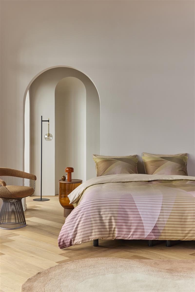 Dekbedovertrek Illuminate van Kardol by Beddinghouse schittert door vloeiende vormen die met licht en kleur spelen. Geïnspireerd door kunst, mode en architectuur, vangt dit ontwerp de innovatieve vormentaal van Artificial Intelligence, maar dan met de hand vervaardigd. Het ton-sur-ton streepmotief voegt diepte en elegantie toe, waardoor het geheel een betoverende uitstraling krijgt. De kleuren variëren van warm goud en terra tot nude, zachtroze en diep bordeauxrood. De achterzijde heeft een effen champagnekleur.Kwaliteit- De dekbedovertrekken van Kardol by Beddinghouse zijn gemaakt van 100% katoensatijn waardoor het overtrek een mooie glans heeft en heerlijk zacht aanvoelt. Het overtrek heeft een dubbele instopstrook en een totale lengte van 260 cm. Door deze extra lengte kan het dekbedovertrek gemakkelijk onder het matras worden gestopt en is het geschikt voor hoge matrassen. Het dekbedovertrek is passend voor dekbedden van 200 cm, 210 cm of 220 cm. Better Cotton- Door katoenproducten te kiezen van ons, steunt u onze investering in de missie van Better Cotton. Dit product is ingekocht via een mass balance systeem en bevat daardoor mogelijk geen Better Cotton. Zie bettercotton.org/learnmore.