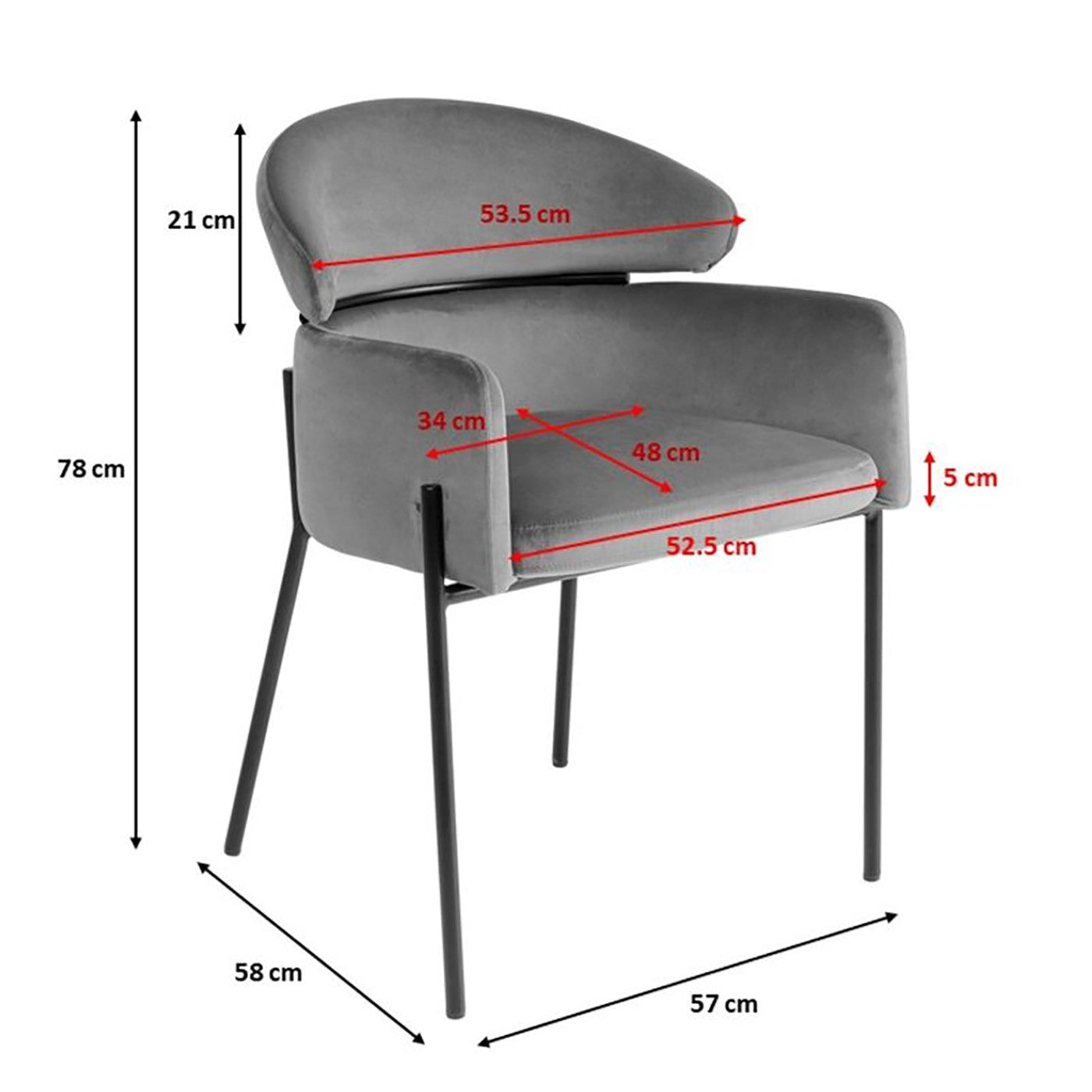 - Moderne Afwerking: De zwarte gepoedercoate poten voegen een eigentijdse uitstraling toe, en de stoel heeft een maximale belasting van 120 kg.