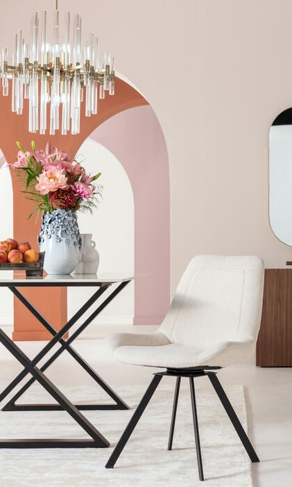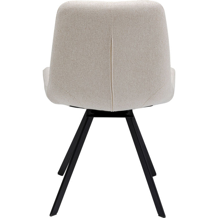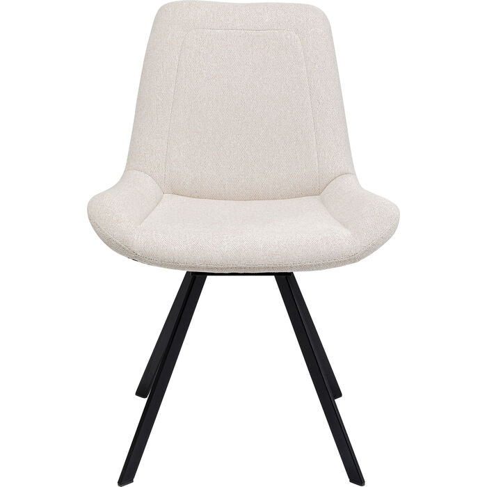 - Een sterke draaistoel met een onderhoudsvriendelijke chenille bekleding in beige