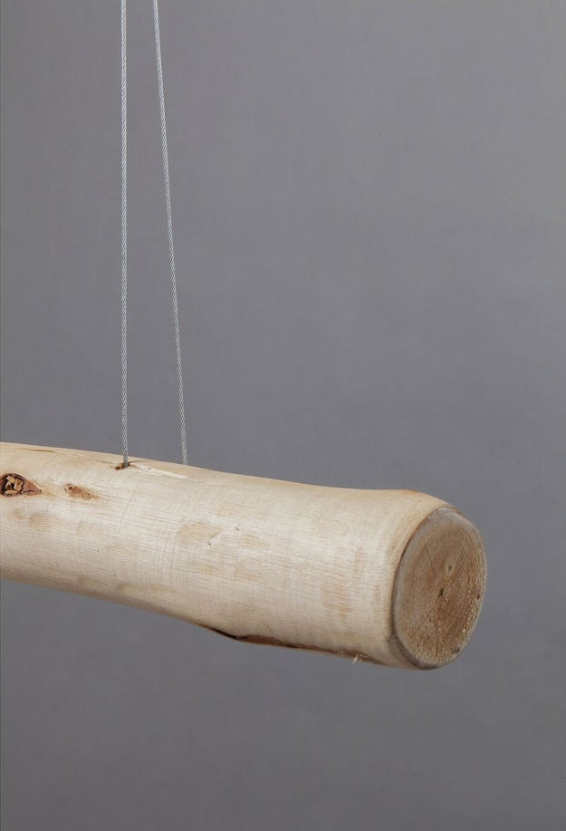 - Hanglamp geheel in het zwart met vijf kappen op een massief beukenhouten stok