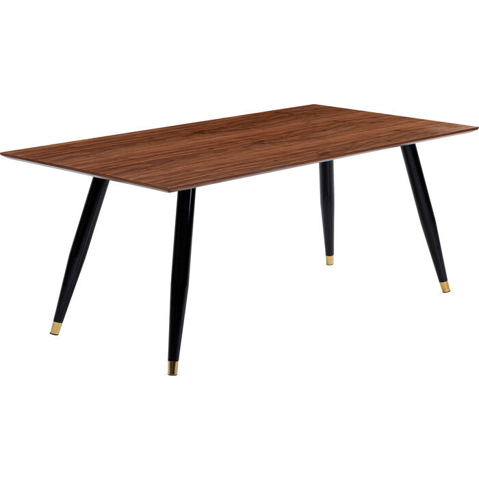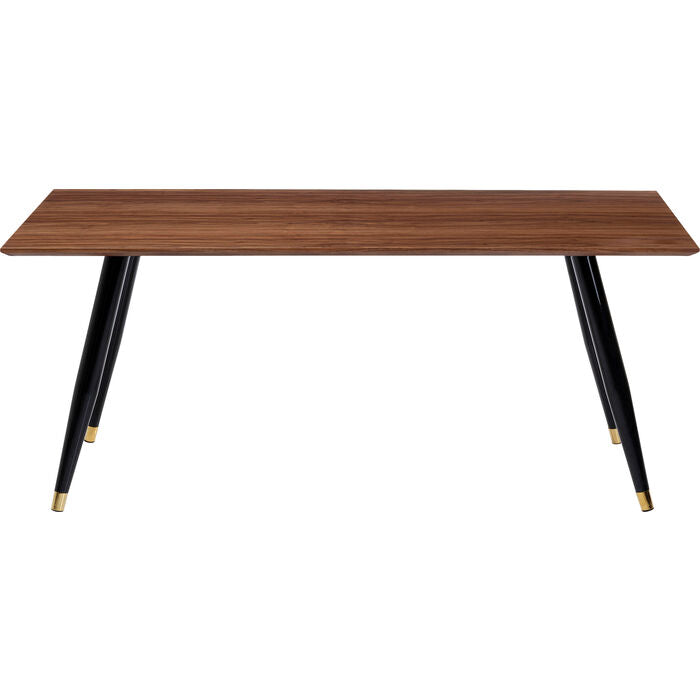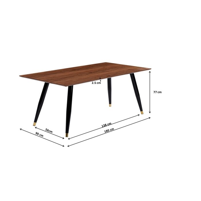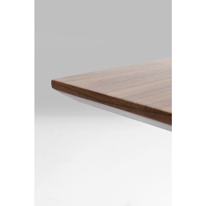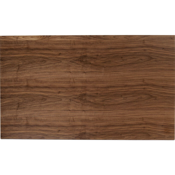 Walnootkleurige tafel met zwarte stalen poten