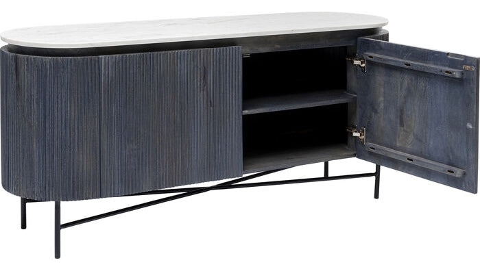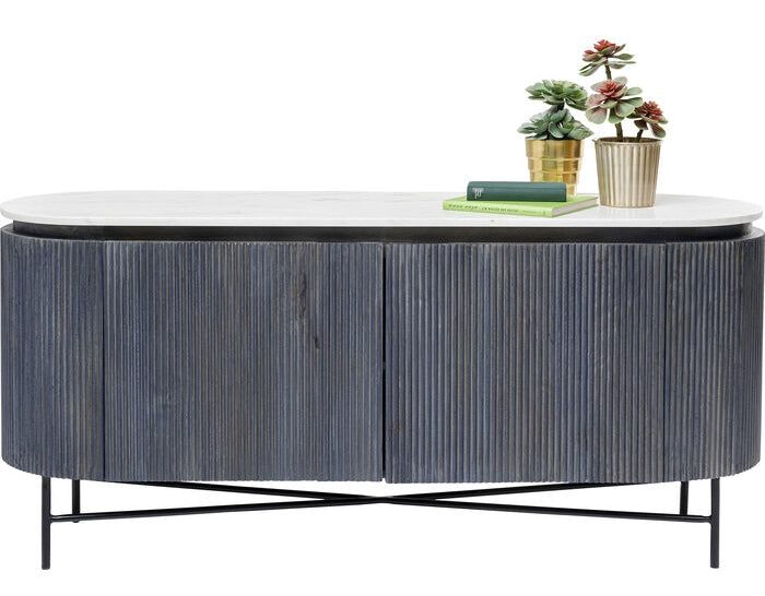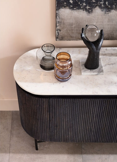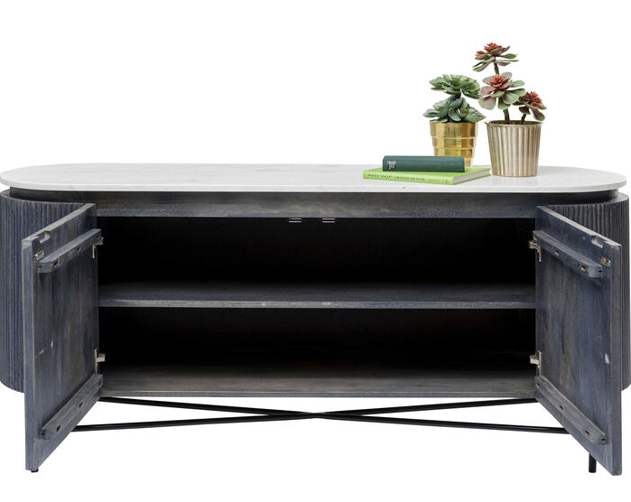 - Elegant dressoir met een marmeren blad, antracietgrijs hout en een zwart frame