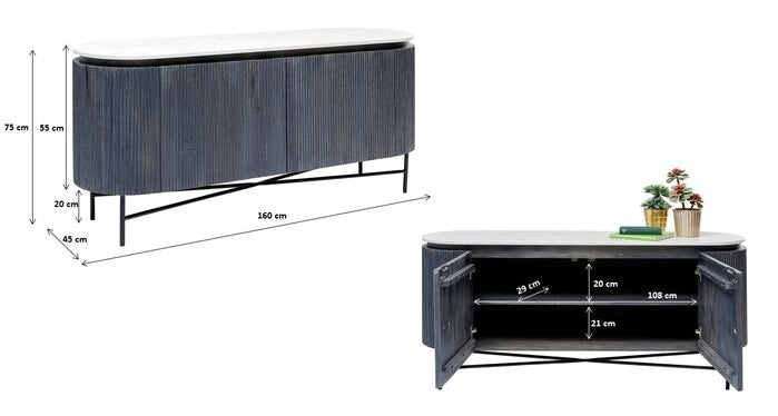- Materiaal: massief mangohout, MDF, marmer en metaal