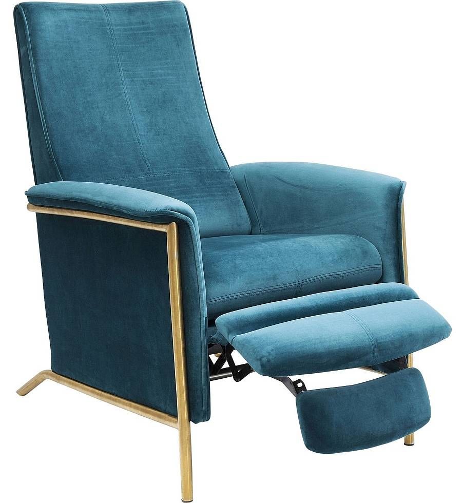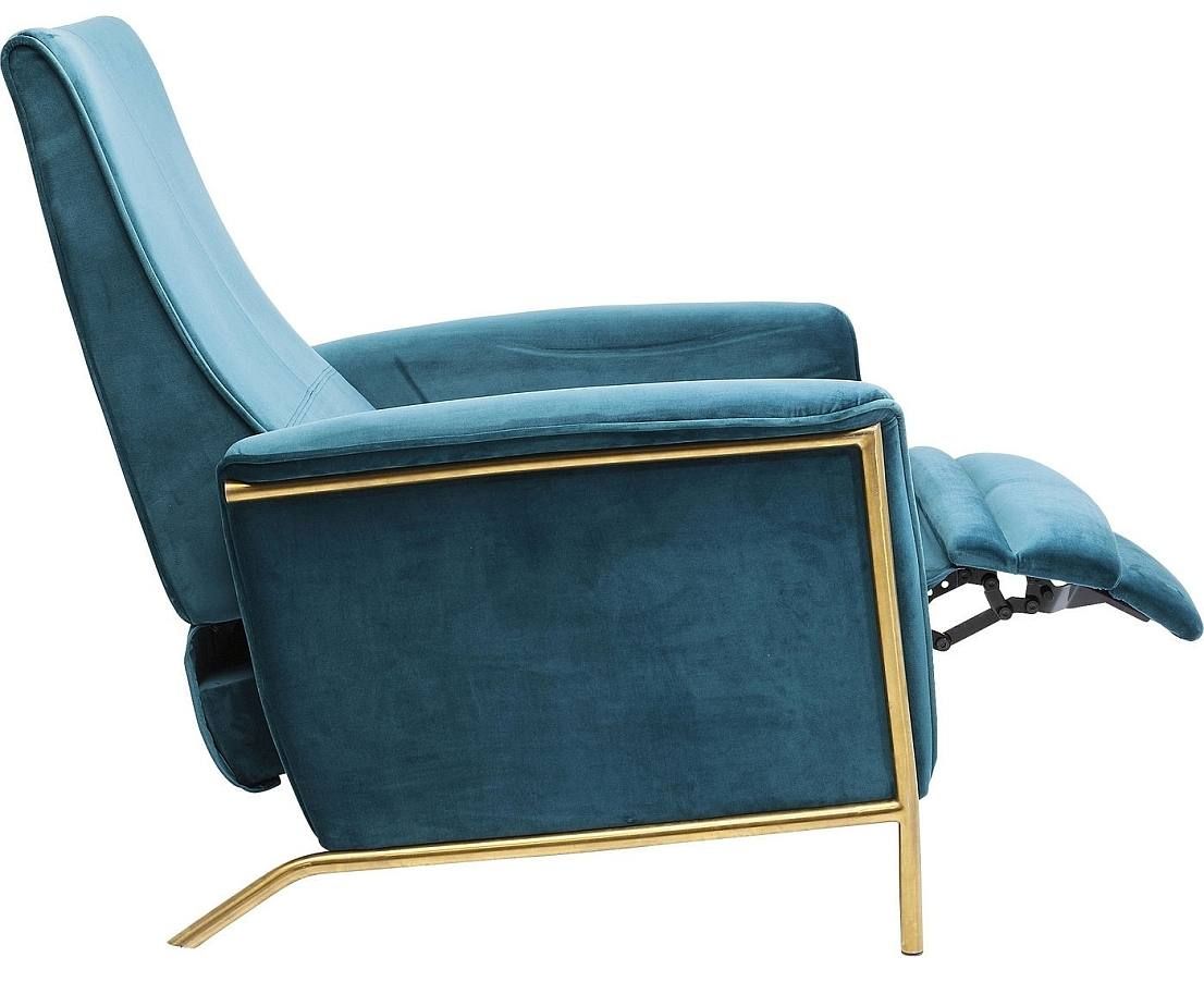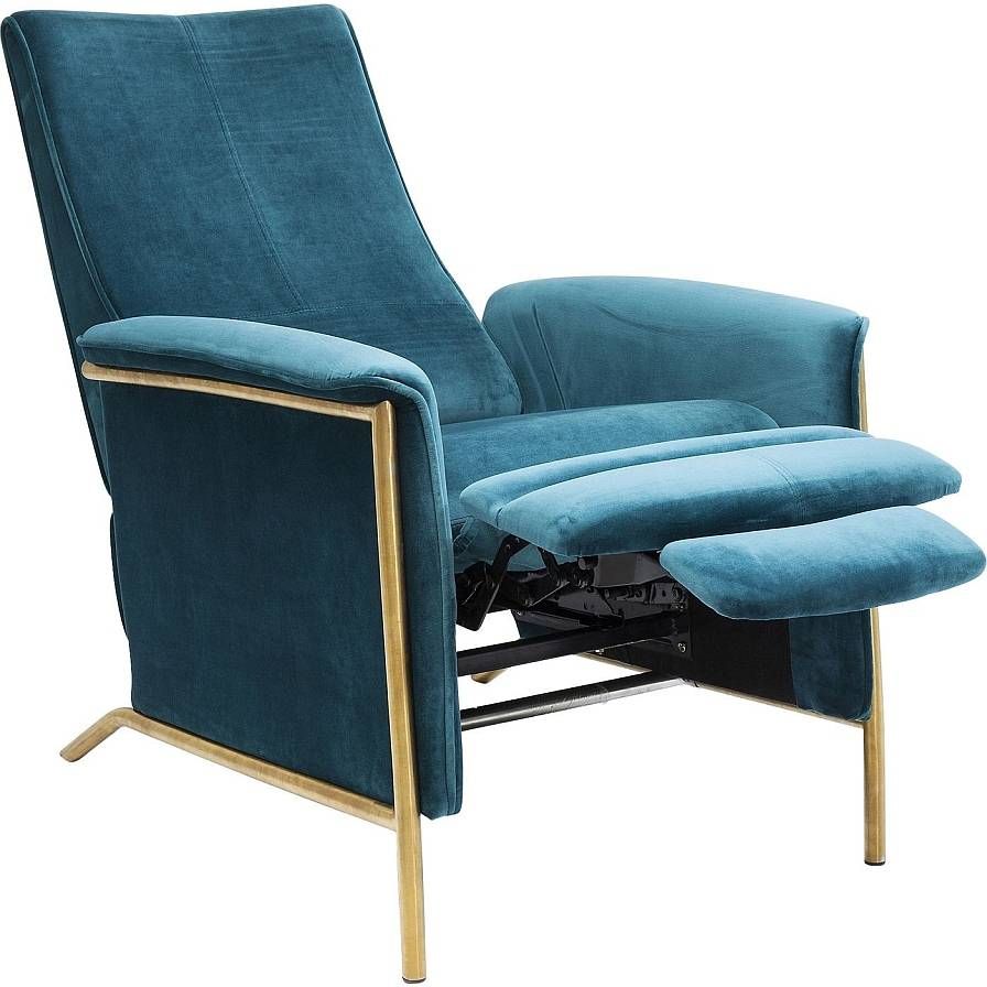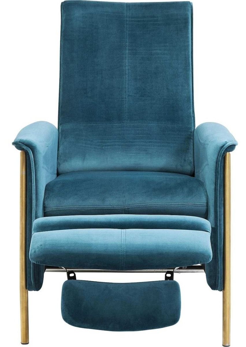 Kare Design Lazy Velvet Relaxfauteuil - Blauw Fluweel - Messing Frame
