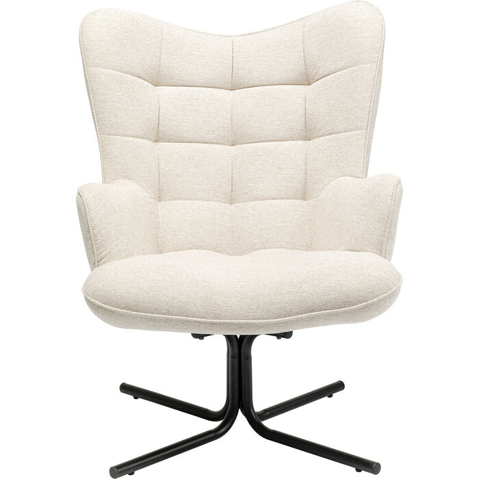 - Comfortabele kuipzitting, elegante knoopstiksels, stabiele zwarte kruispoot