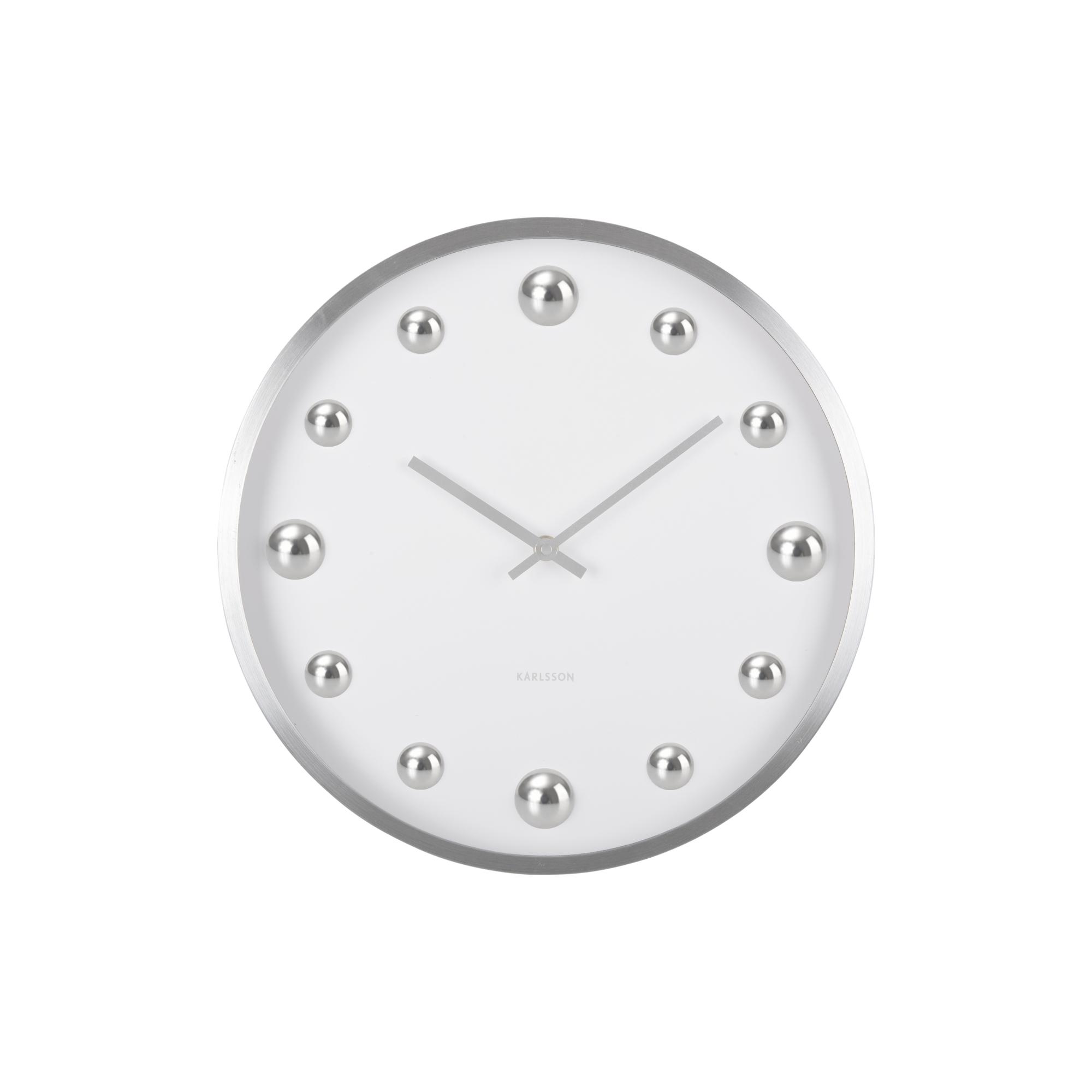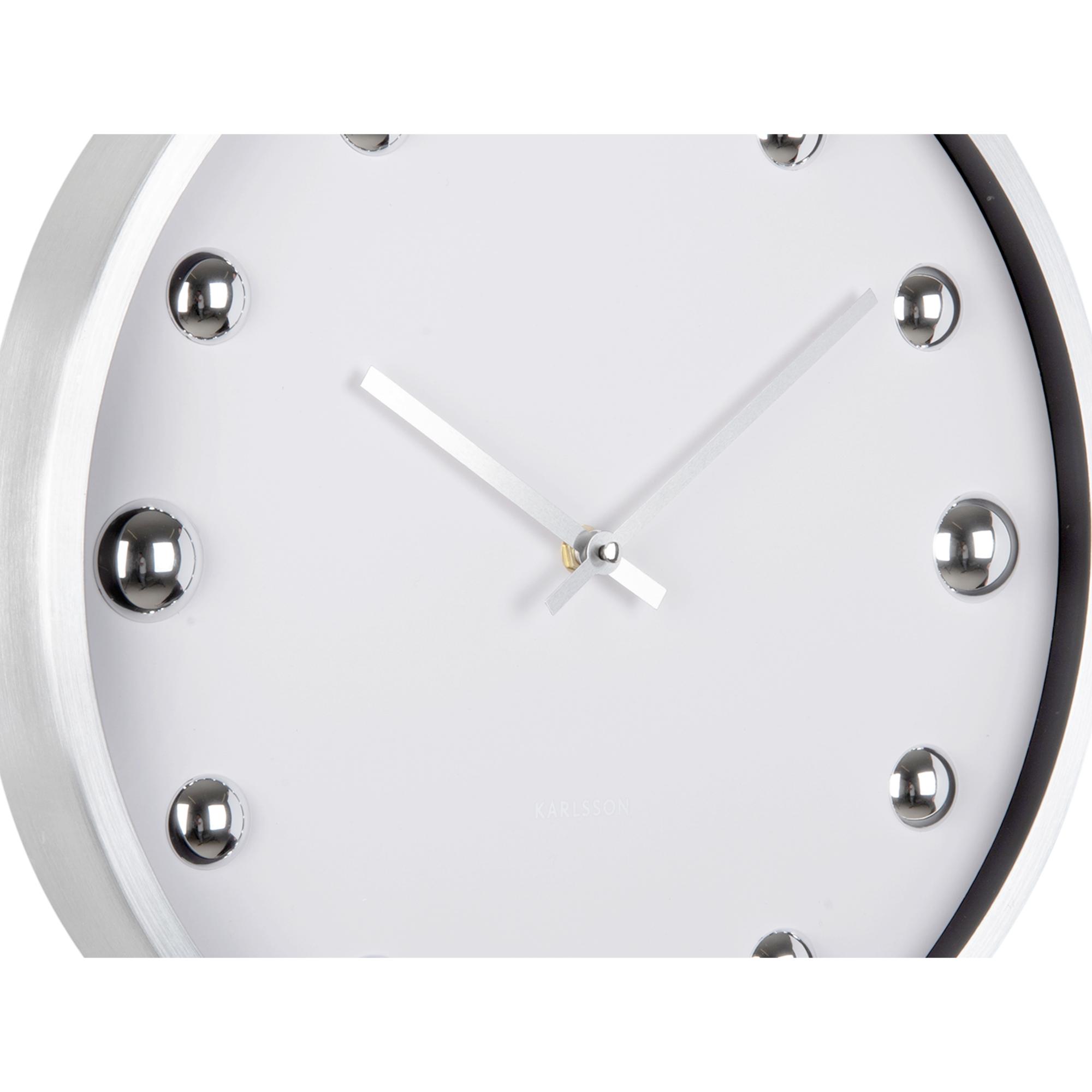 De Shiny Dots wandklok van Karlsson heeft lak aan het woord 'subtiel'. Zijn grote, opvallende glanzende frame met glimmende bollen op de wijzerplaat ?zeggen genoeg: deze wandklok is een opvallende verschijning aan jouw muur. Wordt zonder 1x AA batterij geleverd. ?