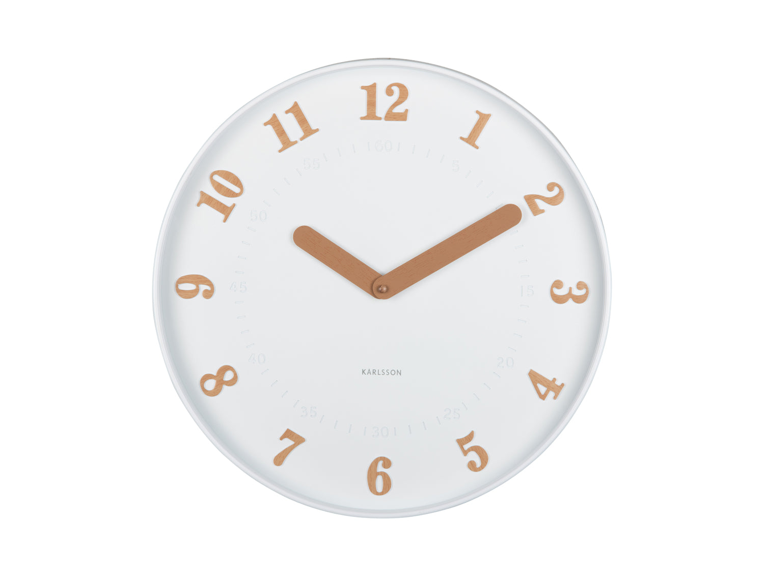 De Amena wandklok van Karlsson speelt met contrast. De wijzerplaat is strak en modern, terwijl de cijfers een warme, natuurlijke uitstraling hebben dankzij de houtkleurige afwerking. De robuuste cijfers en brede wijzers zorgen voor een duidelijke tijdsaanduiding, zonder in te leveren op stijl. De Amena past perfect binnen het Natural Glow thema en voegt karakter toe aan iedere ruimte. Een moderne klassieker met een subtiele knipoog naar natuurlijke materialen.