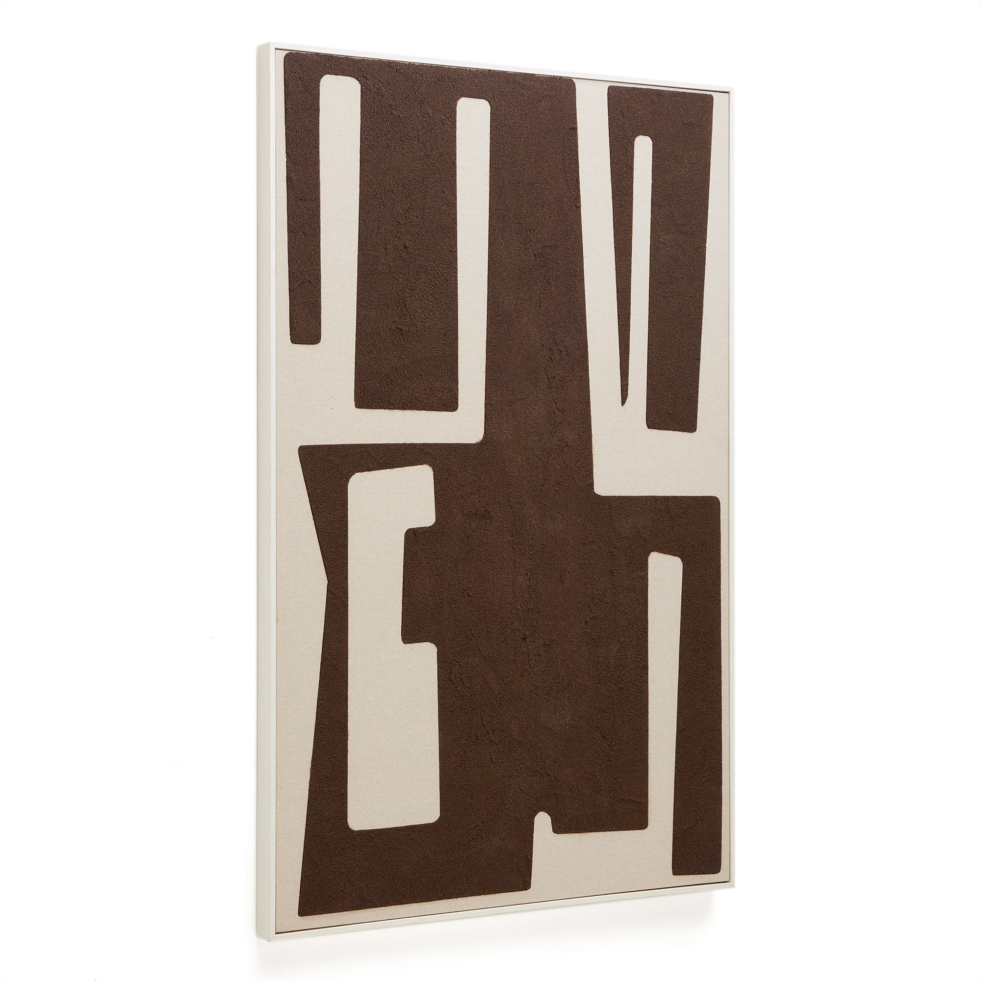 - Abstract schilderij op linnen basis met reliëfs en texturen in beige en bruin.