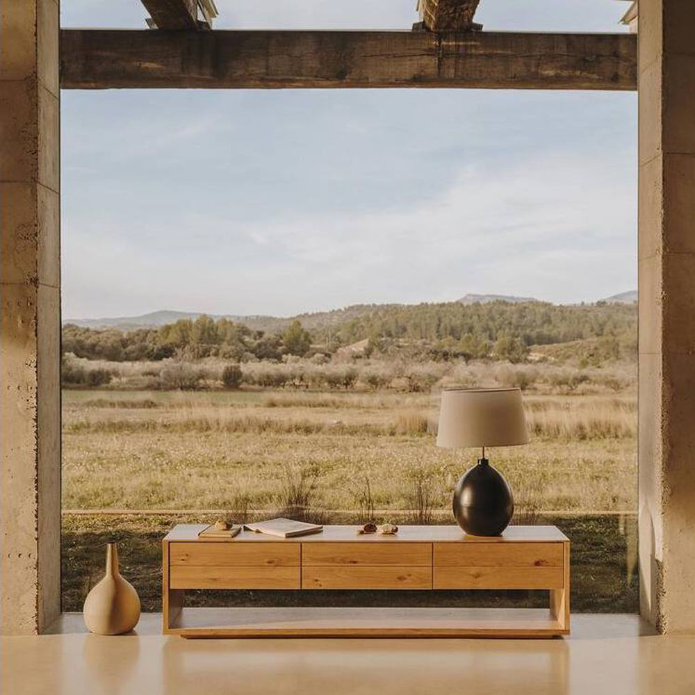Het team van Kave Home heeft Alguema ontworpen, een collectie die rust en kalmte uitstraalt dankzij de minimalistische stijl en de afwerking met natuurlijk eikenfineer.