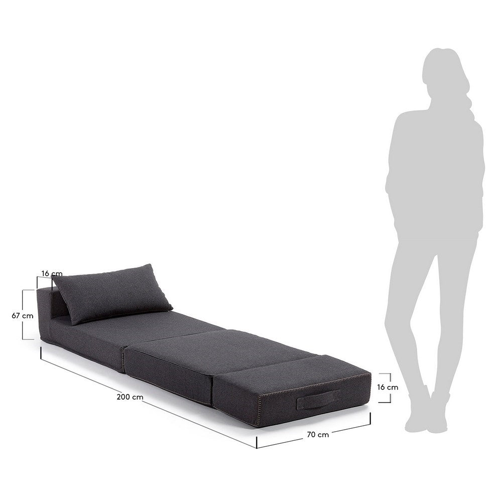 - De slaapbank heeft uitgeklapt een afmeting van 185 x 70 cm.
