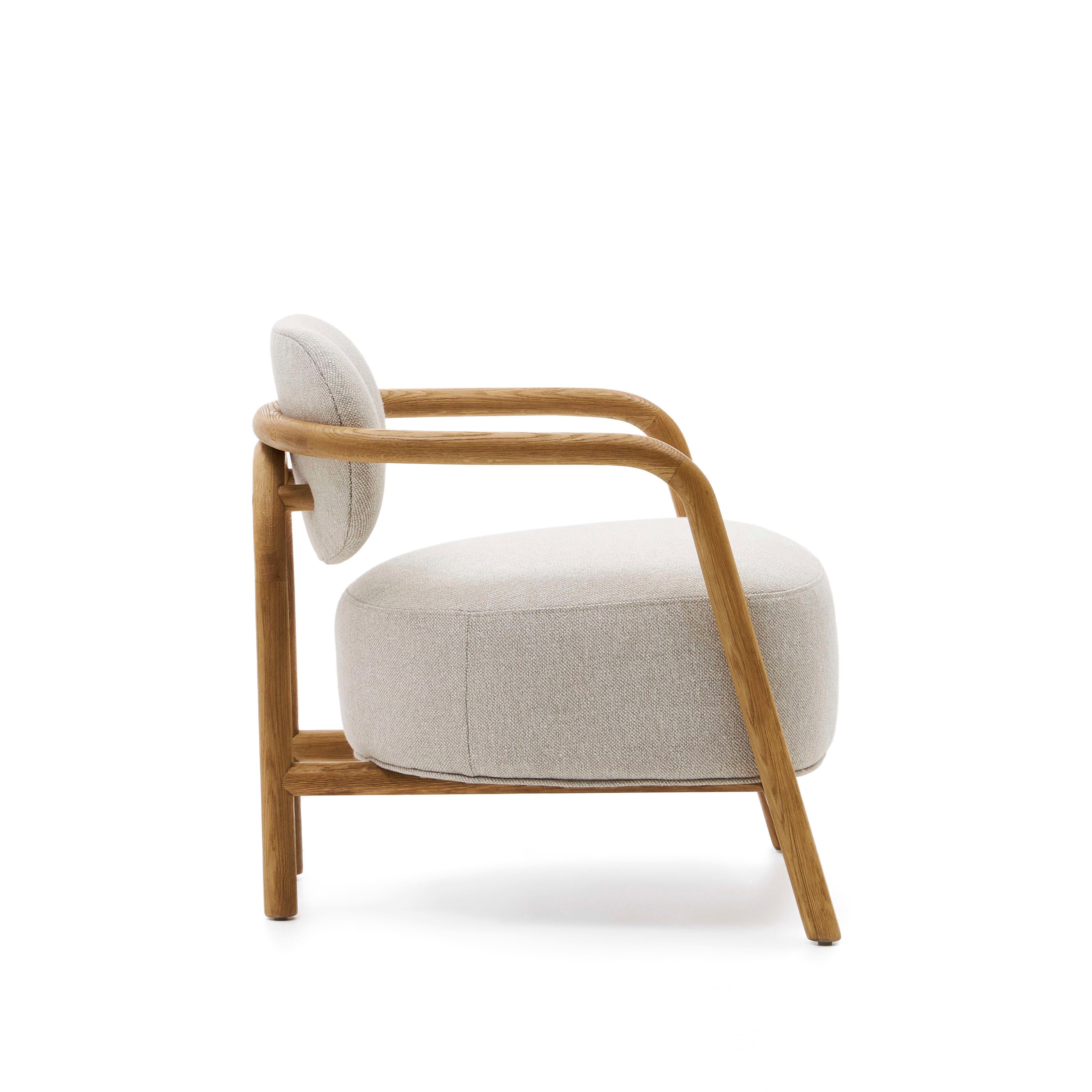 - Fauteuil met armleuningen en structuur in massief eikenhout met natuurlijke afwerking.