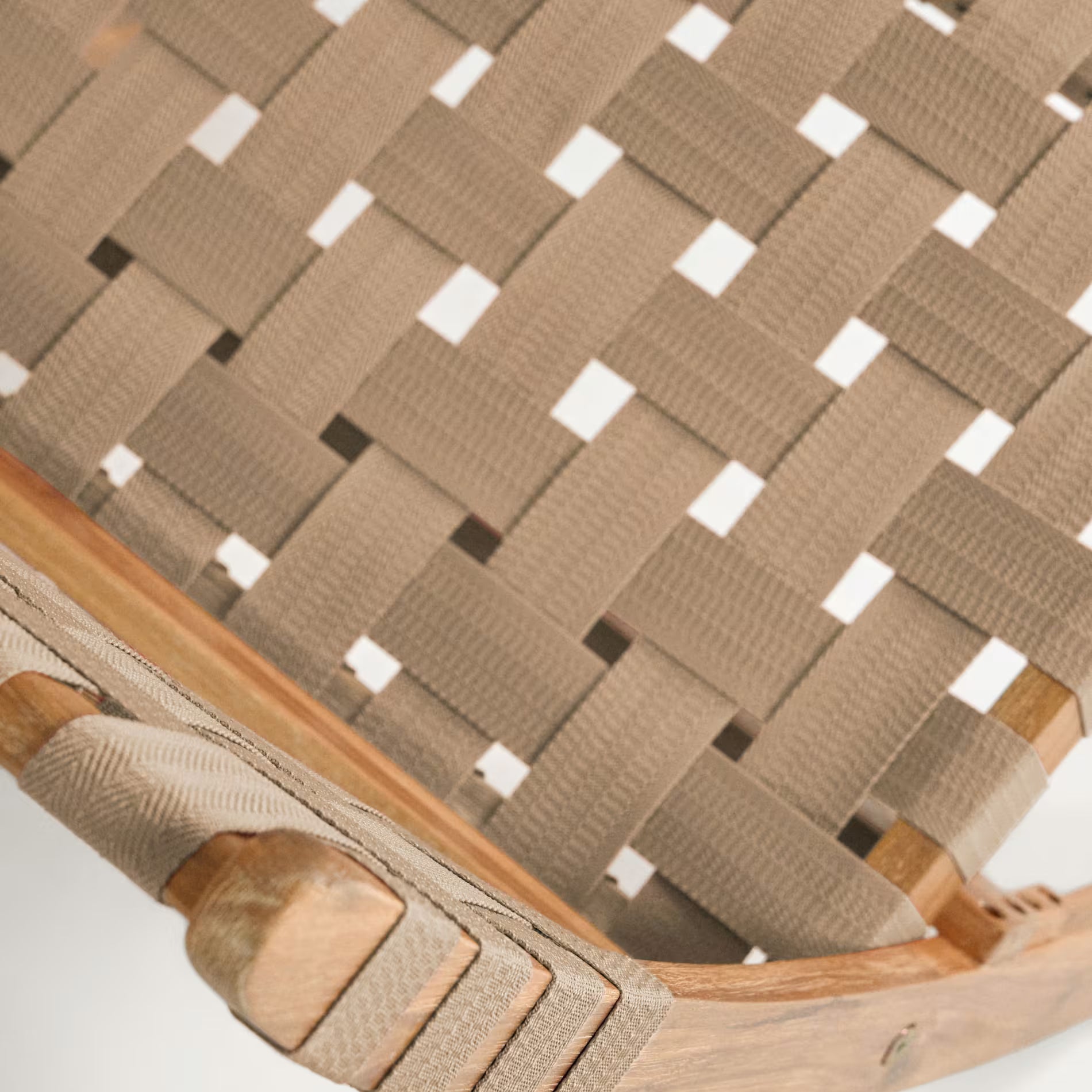 - De handgevlochten zitting van geweven gordel maakt de stoel stevig en heerlijk comfortabel