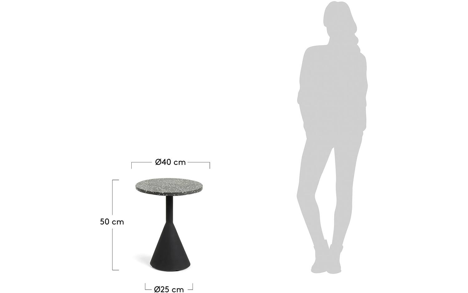 - Bijzettafel met keramisch blad van terrazzo met zwarte bodem.