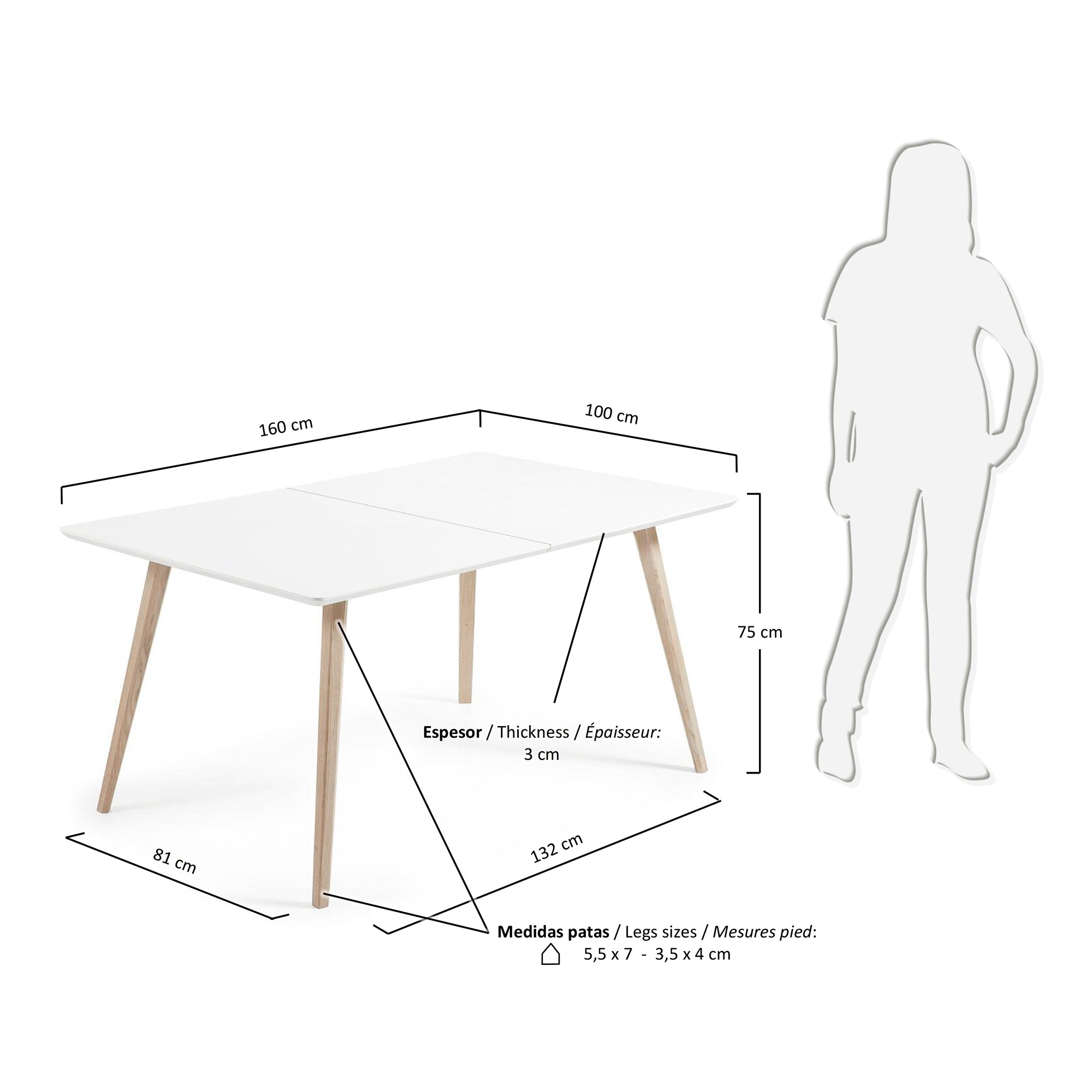 Uitvoeringen | Wit/Hout/160 - 260 x 100 cm |