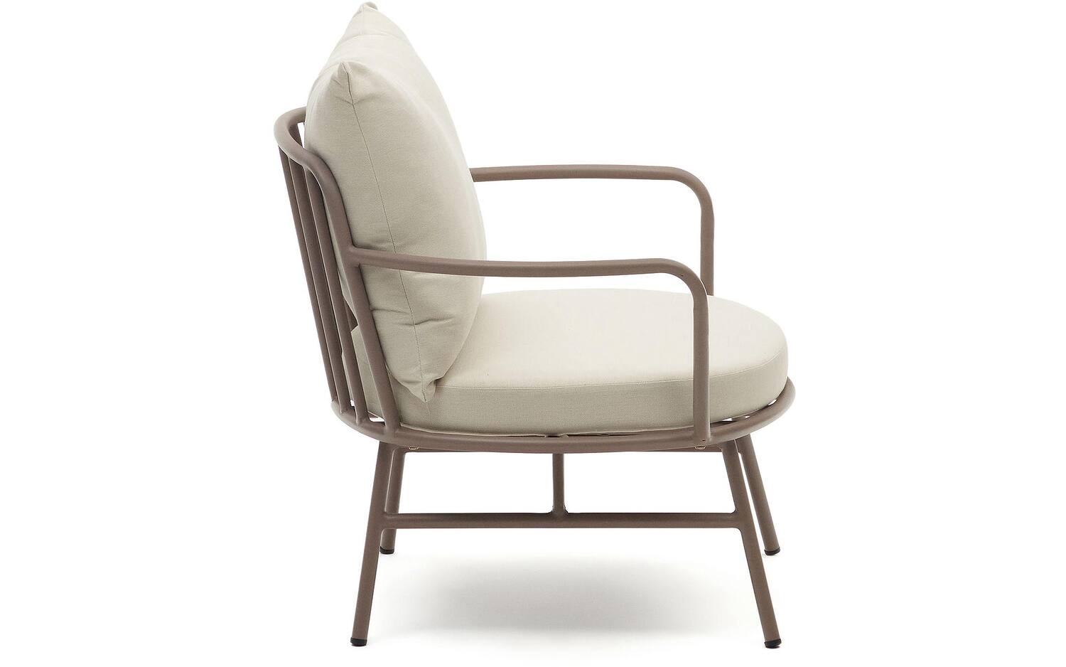 Bramant vult uw overdekte buitenruimtes met stijl. Een creatie van Gazpacho Studio voor Kave Home, waar afgerond, gebogen staal volledig tot uiting komt. Design leeft binnen en buiten uw huis.