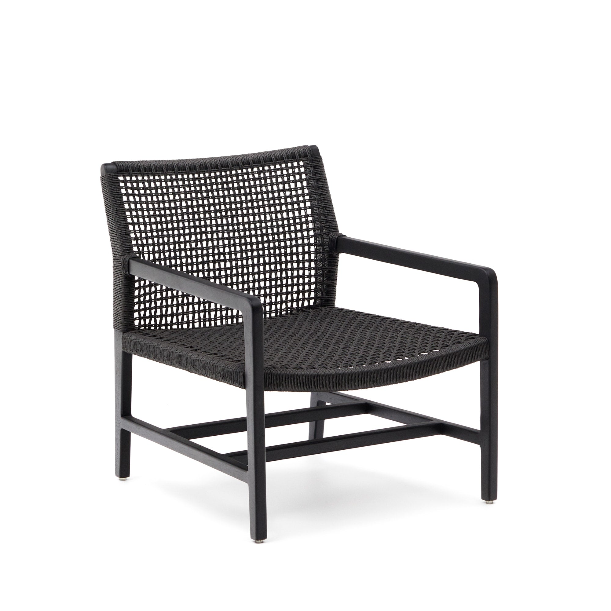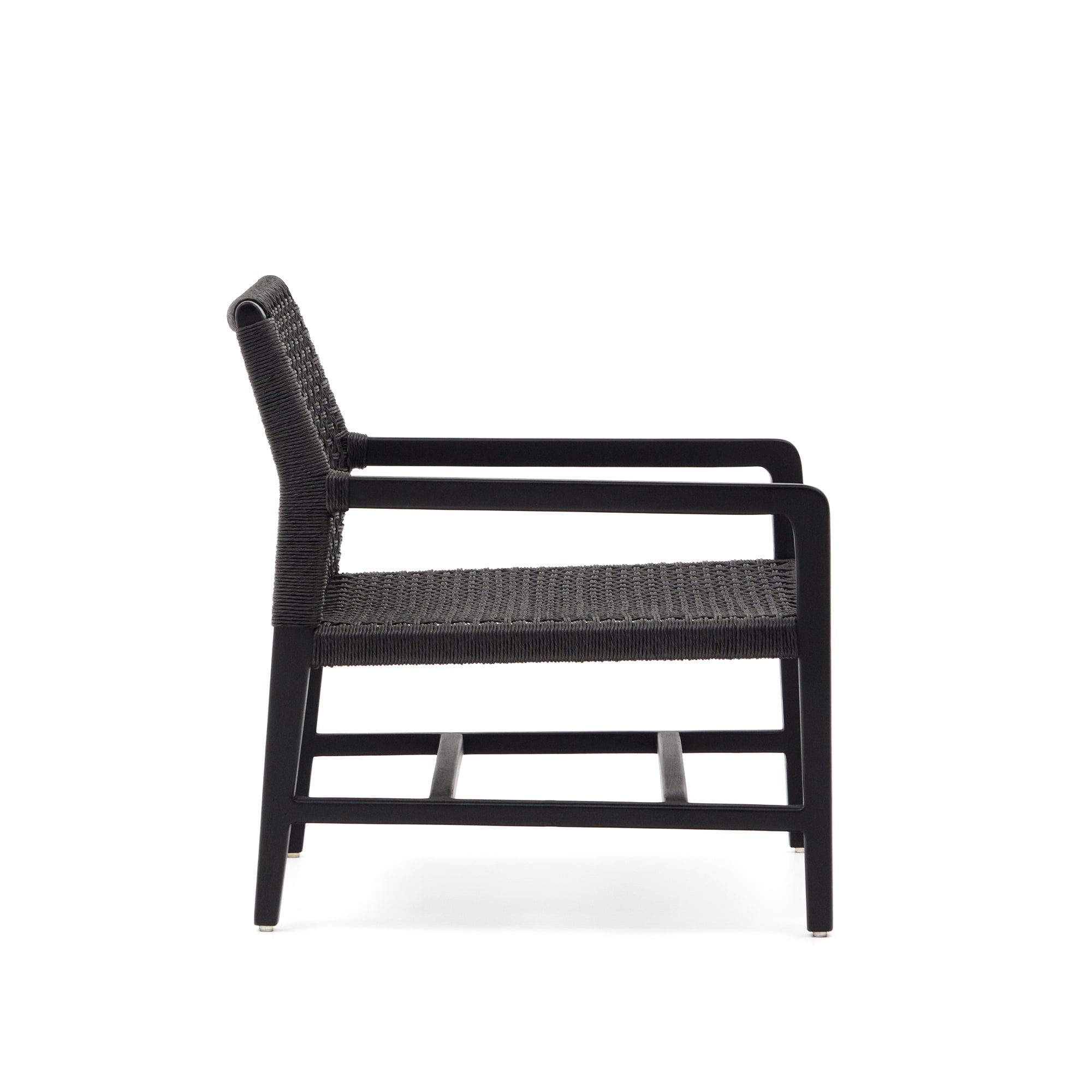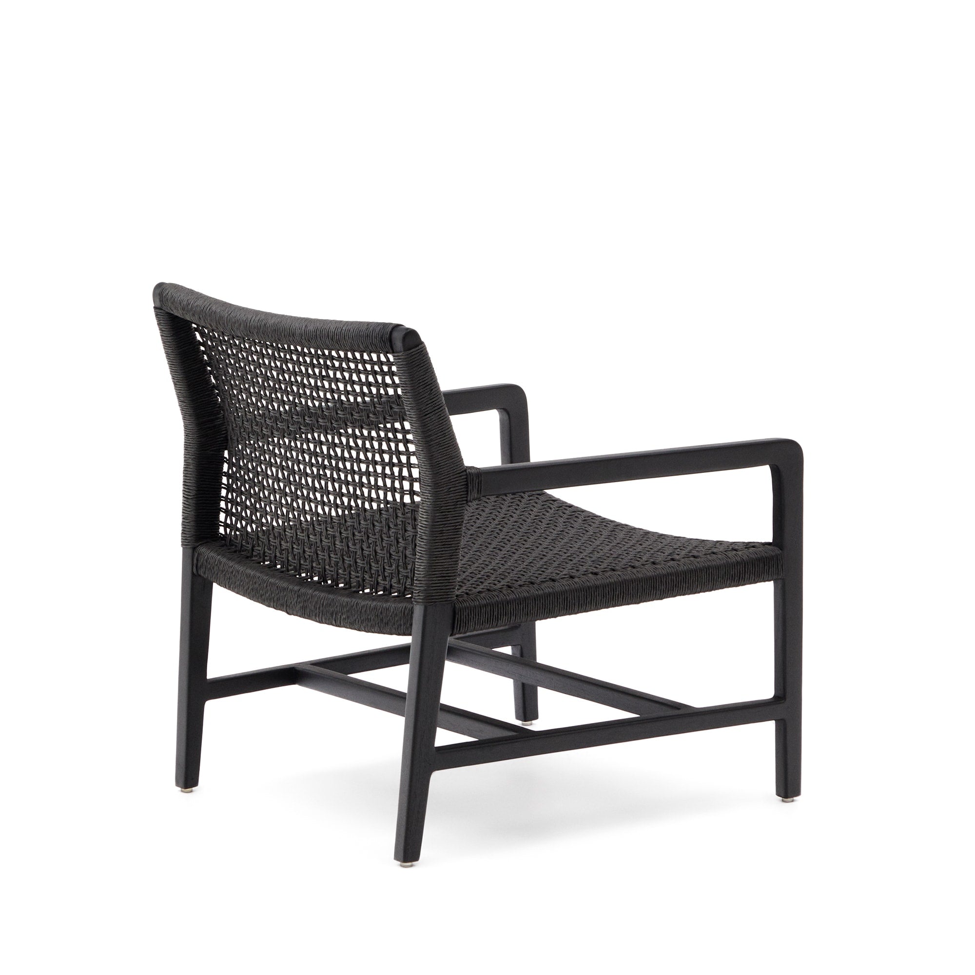 - Massief teakhouten fauteuil met zwarte afwerking.