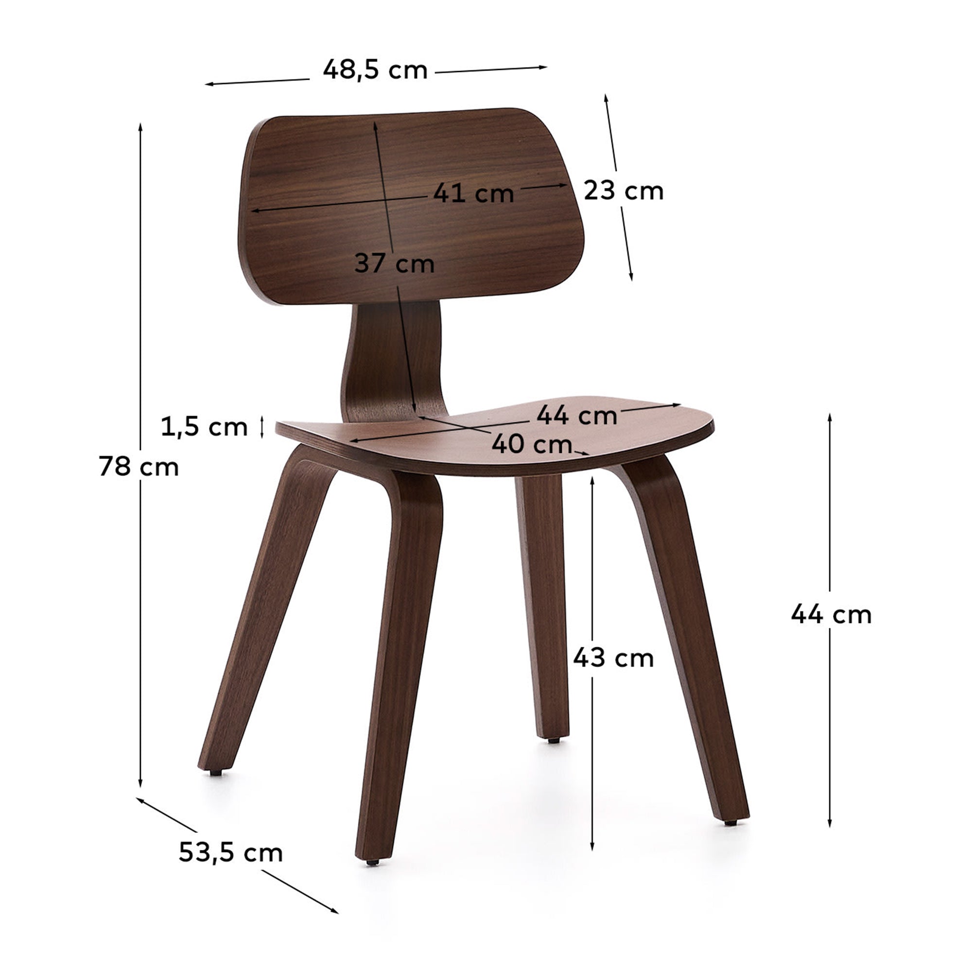 - Modern eetkamerstoeltje van H 78 x B 48,5 x D 53,5 cm