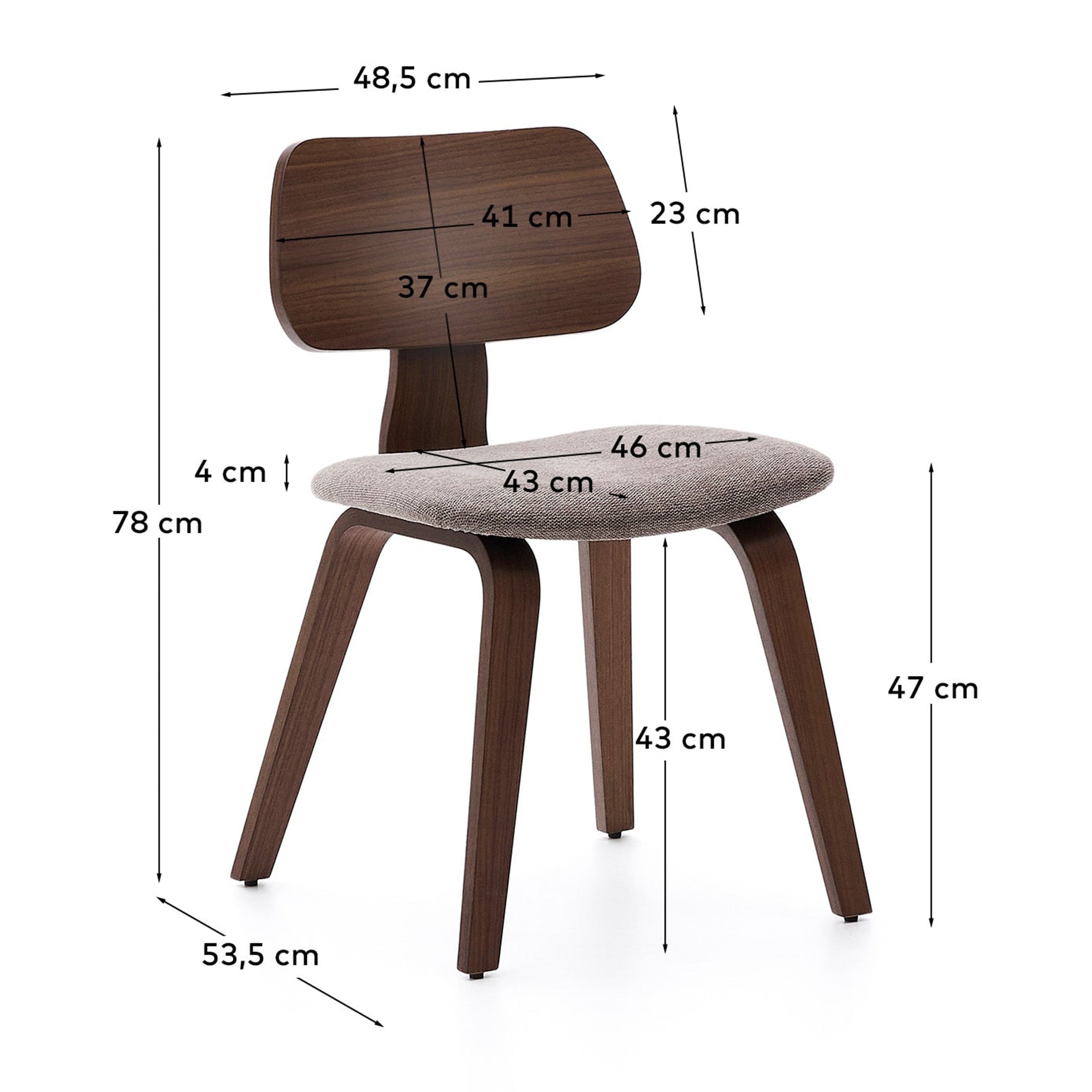 - Modern eetkamerstoeltje van H 78 x B 48,5 x D 53,5 cm