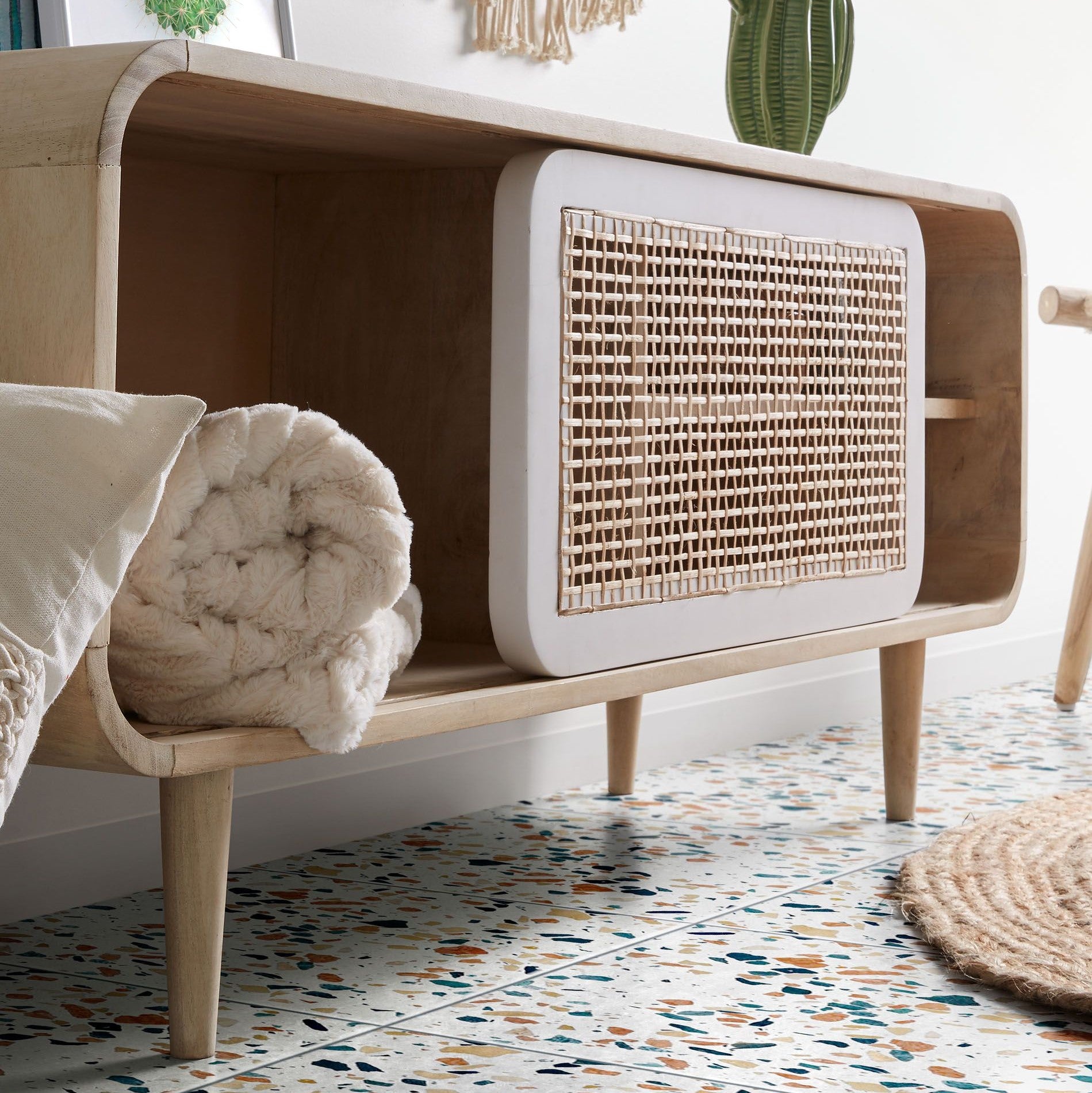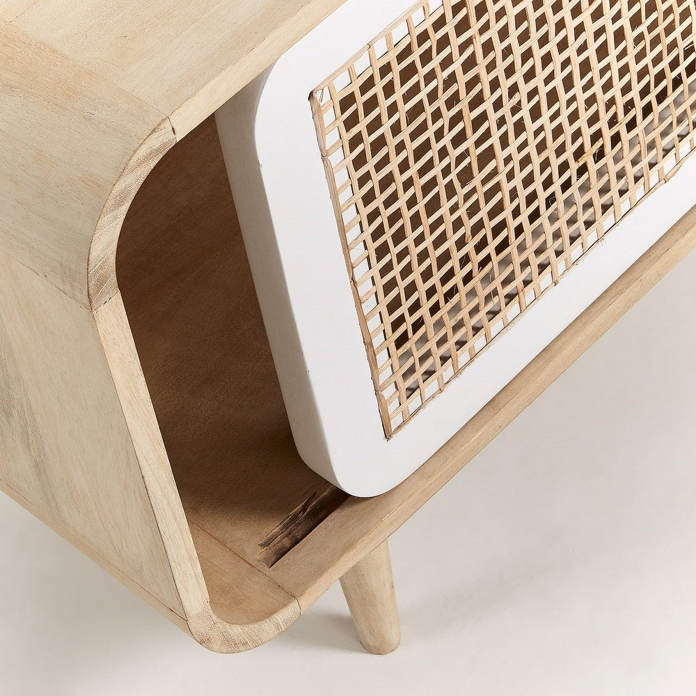 - Gemaakt van naturel gekleurd mangohout en gevlochten riet