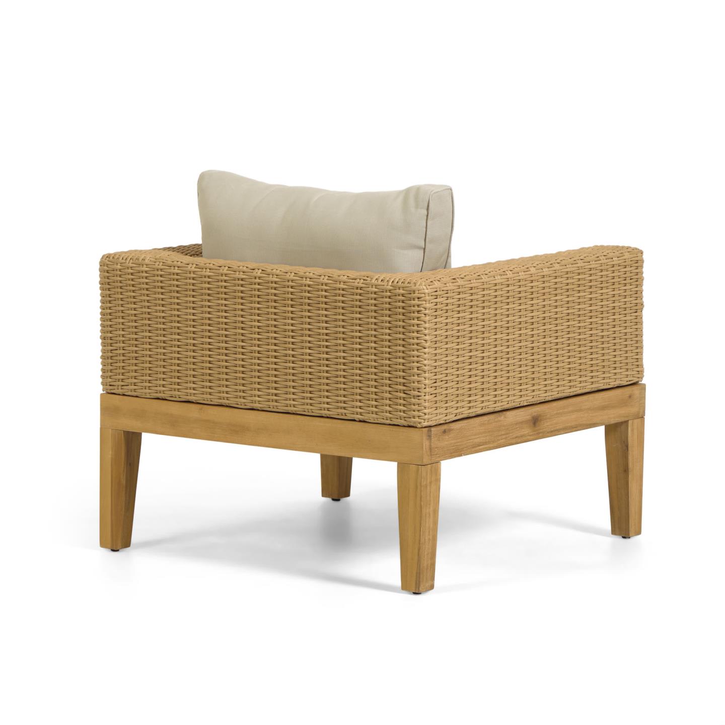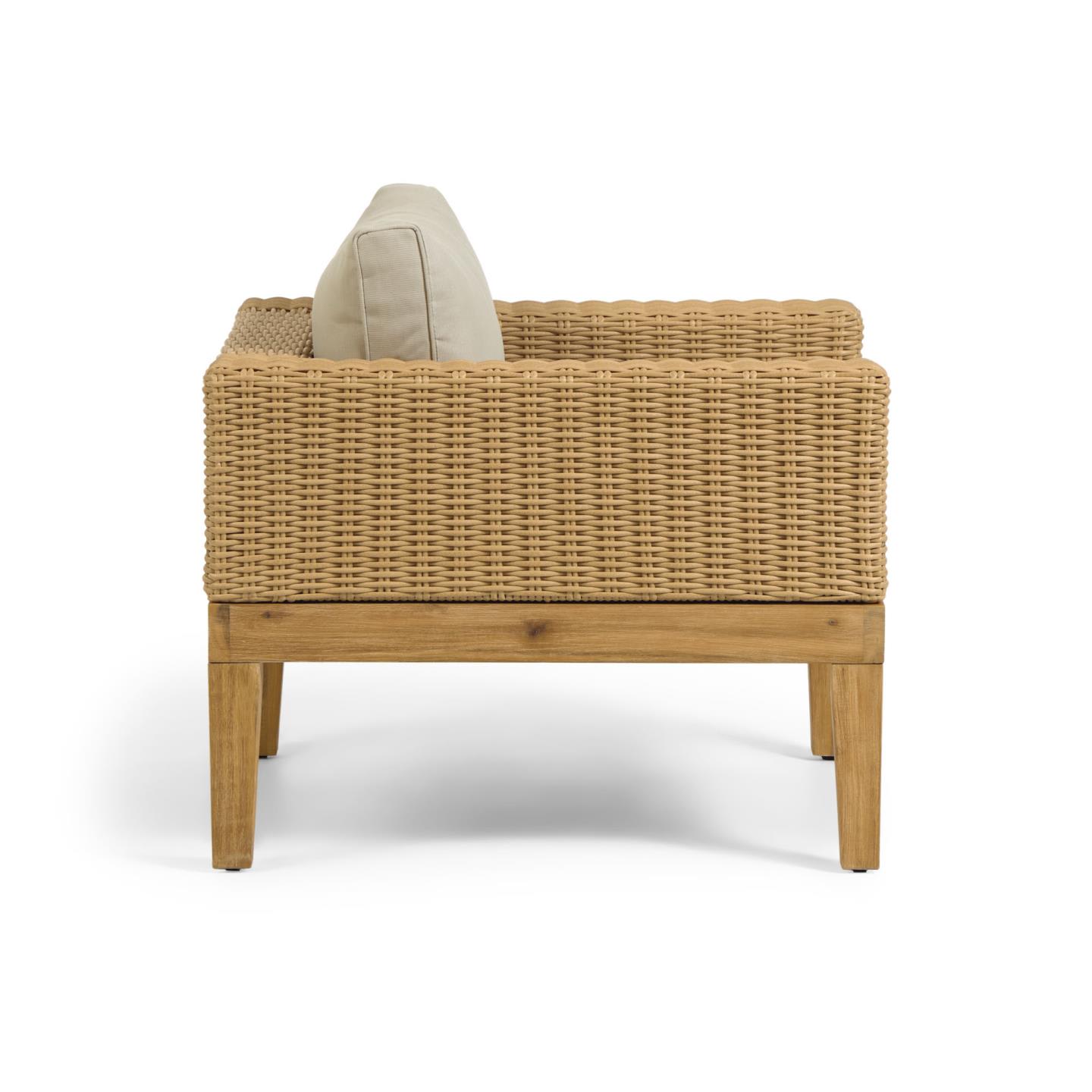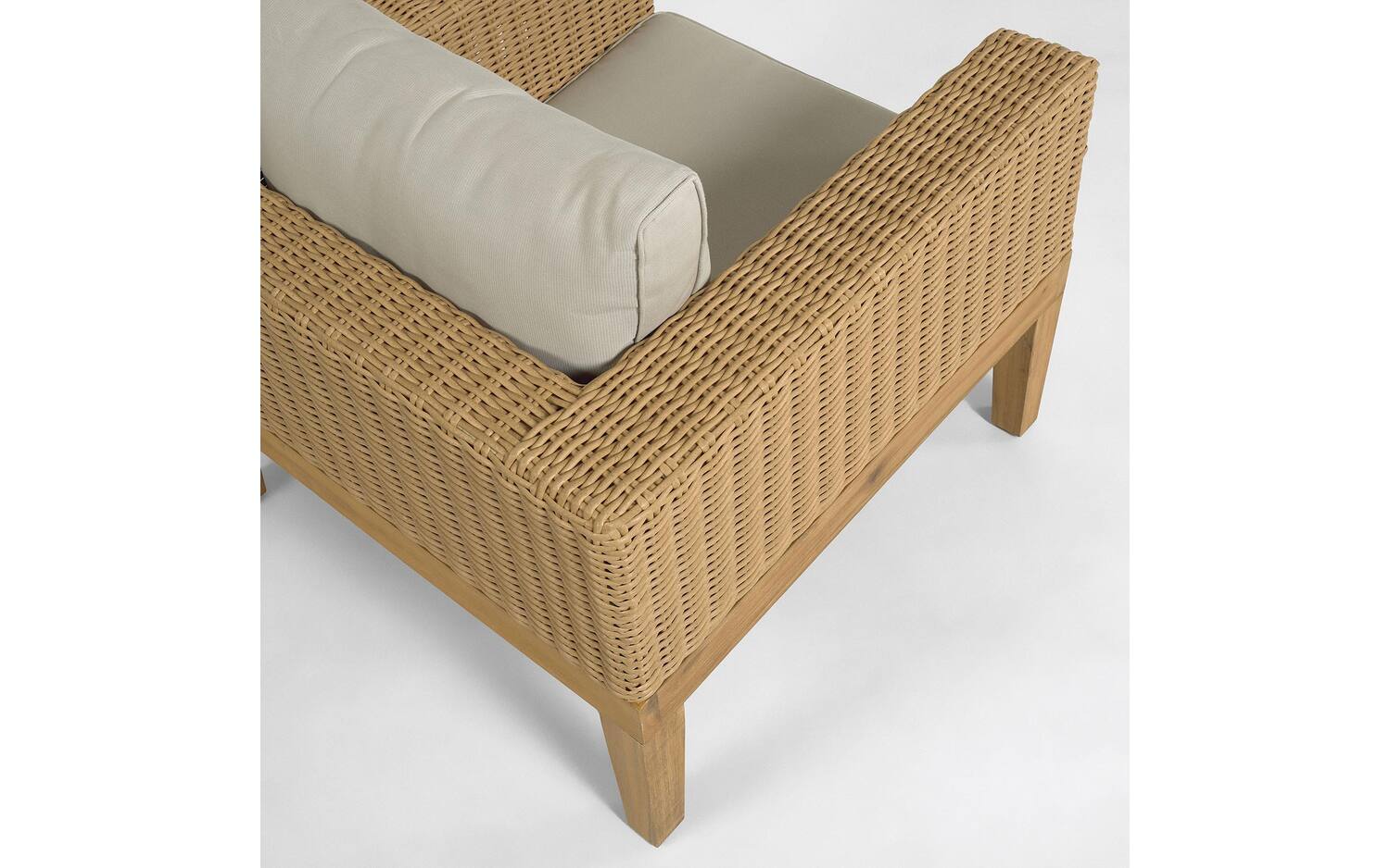 - Armleuningen en rugleuning zijn gemaakt van handgeweven synthetisch rotan.
