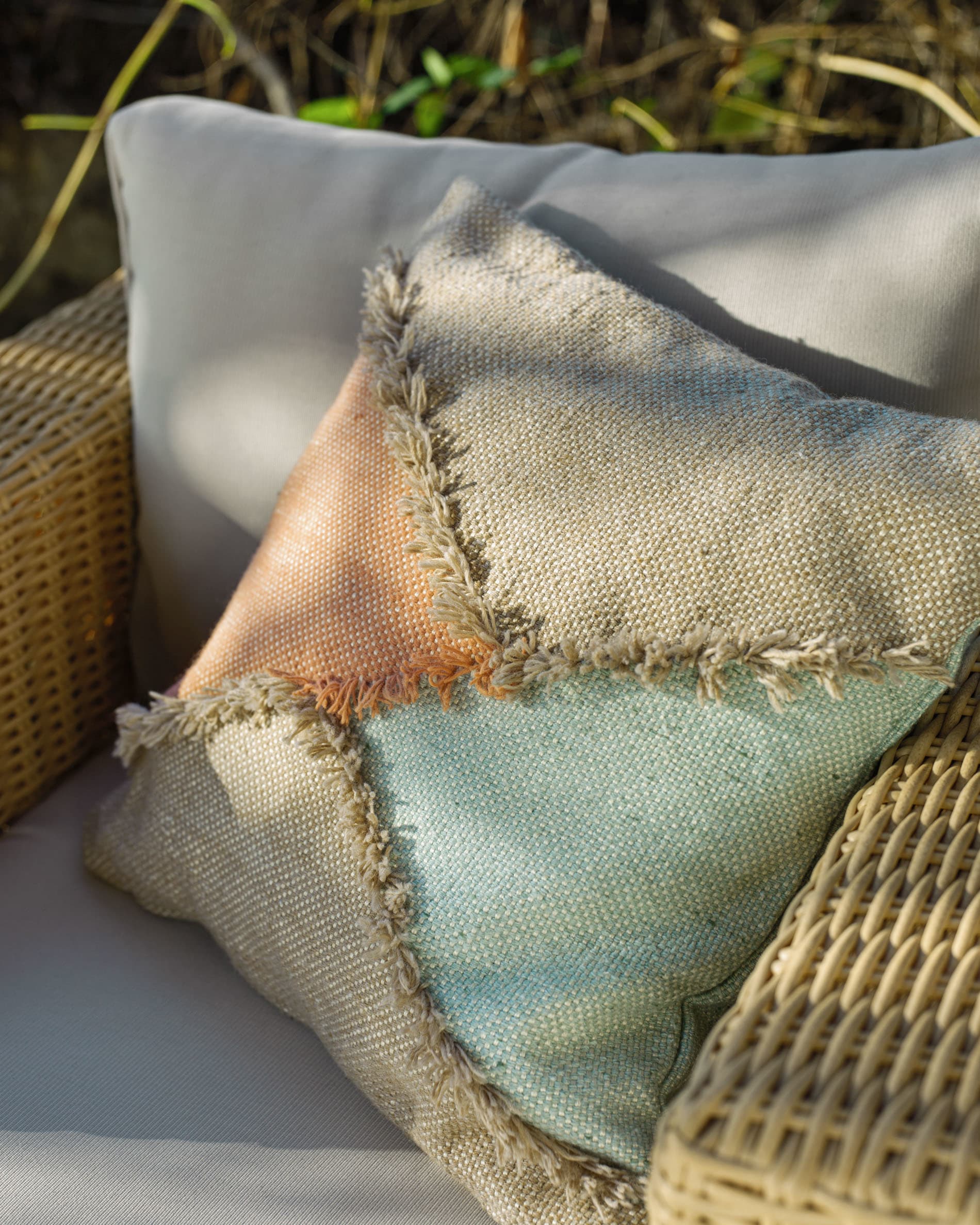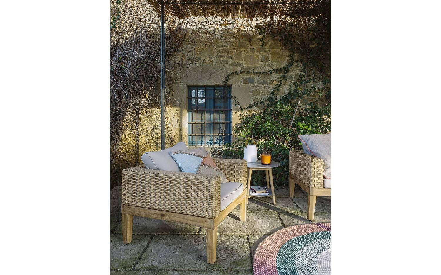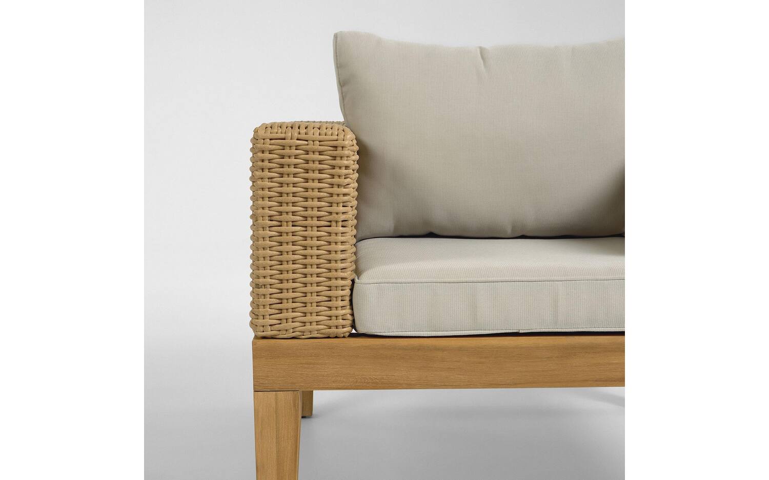 - Armleuningen en rugleuning zijn gemaakt van handgeweven synthetisch rotan.
