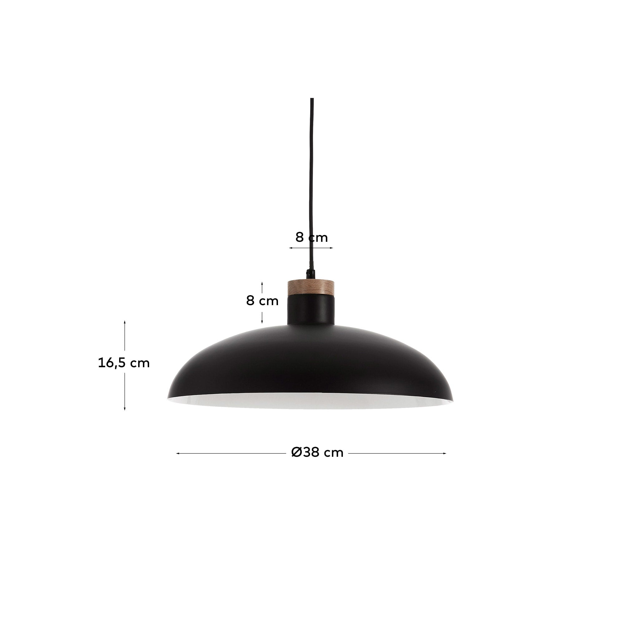 Plafondlamp met metalen kap en hout. Voor E27-lamp niet inbegrepen.