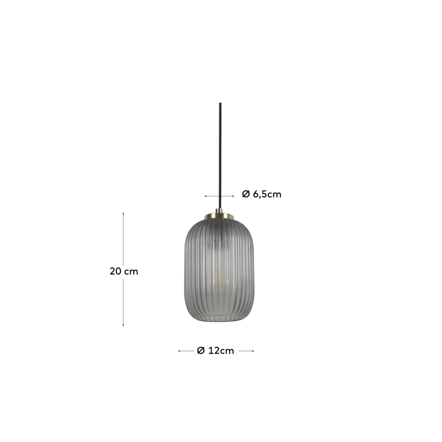 - Gemaakt van rookgrijs matglas en messing