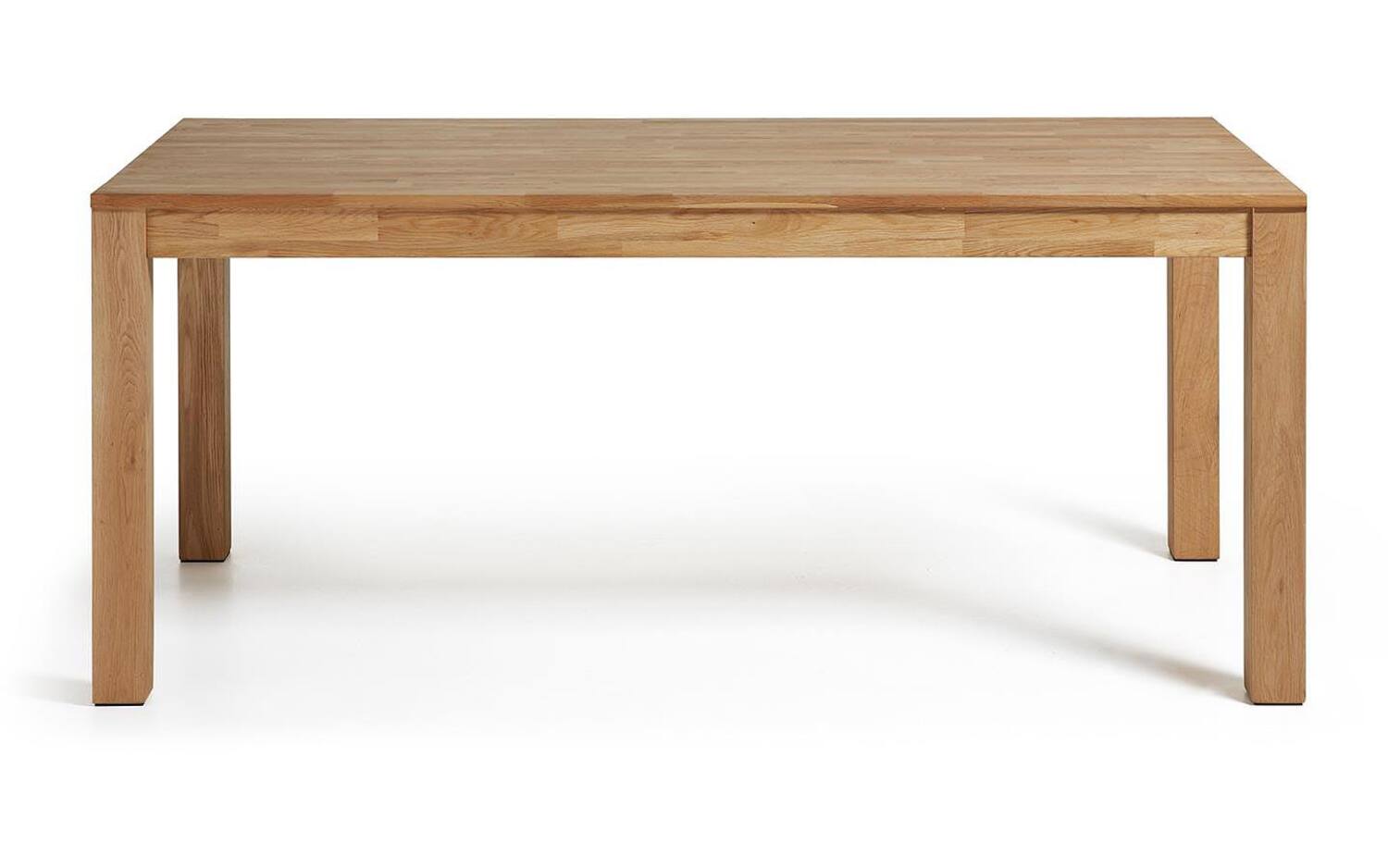 Uitschuifbare tafel met natuurlijk eiken onderstel en blad. Maximale lengte 220 cm.