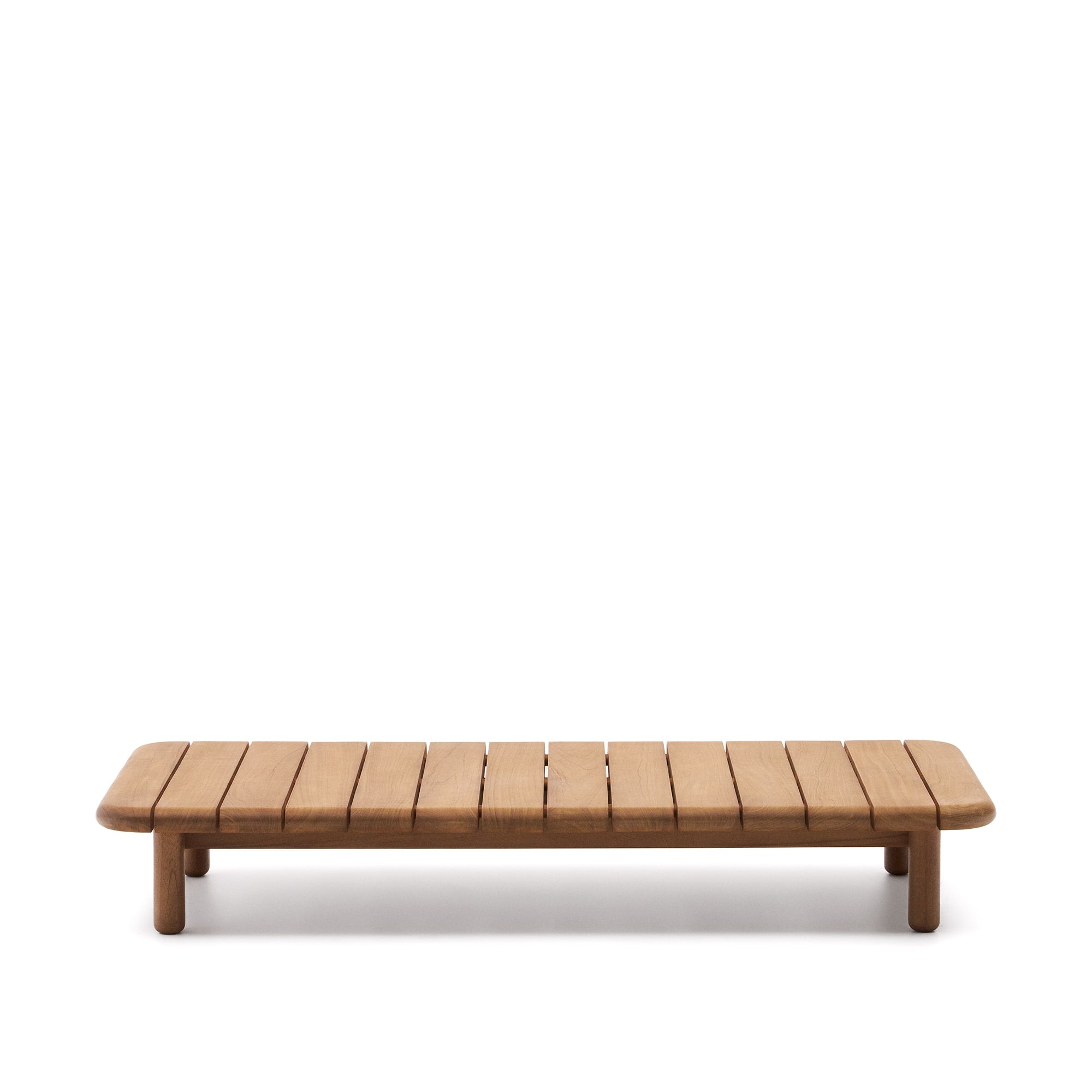 Turqueta is een exclusief ontwerp van Made Studio voor Kave Home. De eigentijdse geometrische vormen en uitgesproken horizontaliteit stralen buiten rust en comfort uit. Een collectie gemaakt van massief teakhout voor de ultieme ontspanning.