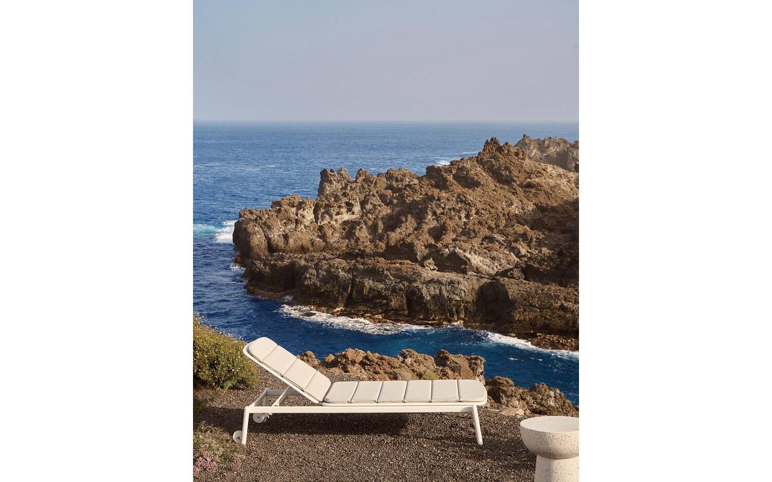 - Ligstoel gemaakt van aluminium met een wit geverfde afwerking.