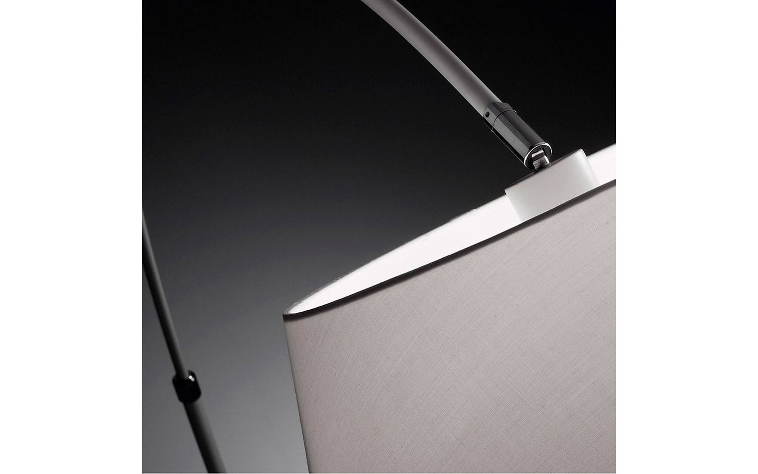 - Vloerlamp met wit gelakte stalen arm en marmeren voet in wit.