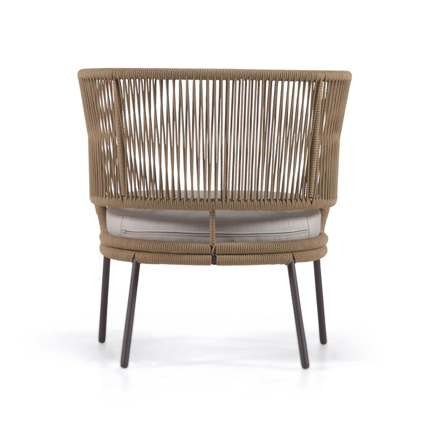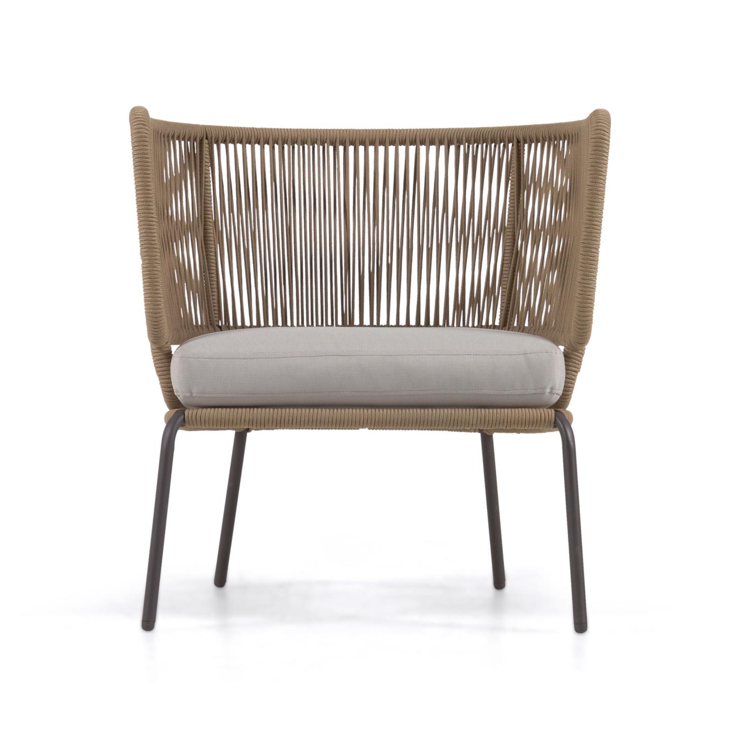 - Fauteuil met gegalvaniseerd stalen frame met een zitting van riemen en een rugleuning van geweven koord.