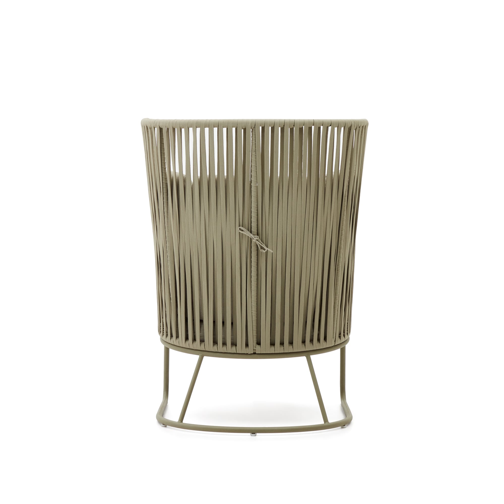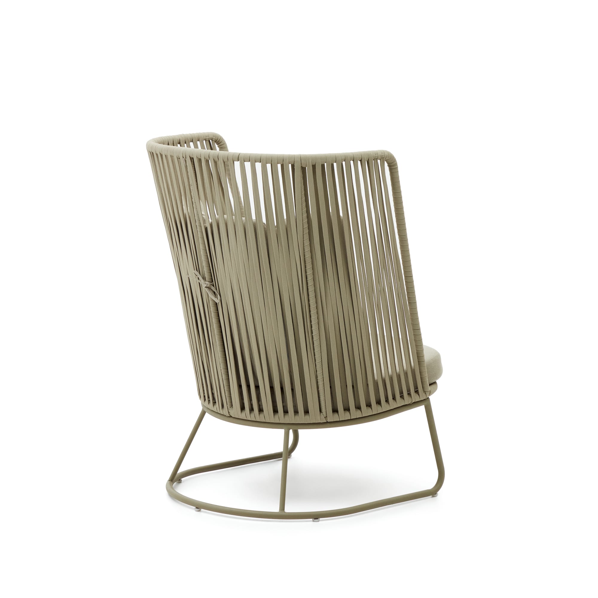 - Fauteuil met handgevlochten rug- en armleuningen met UV-bestendig touw.