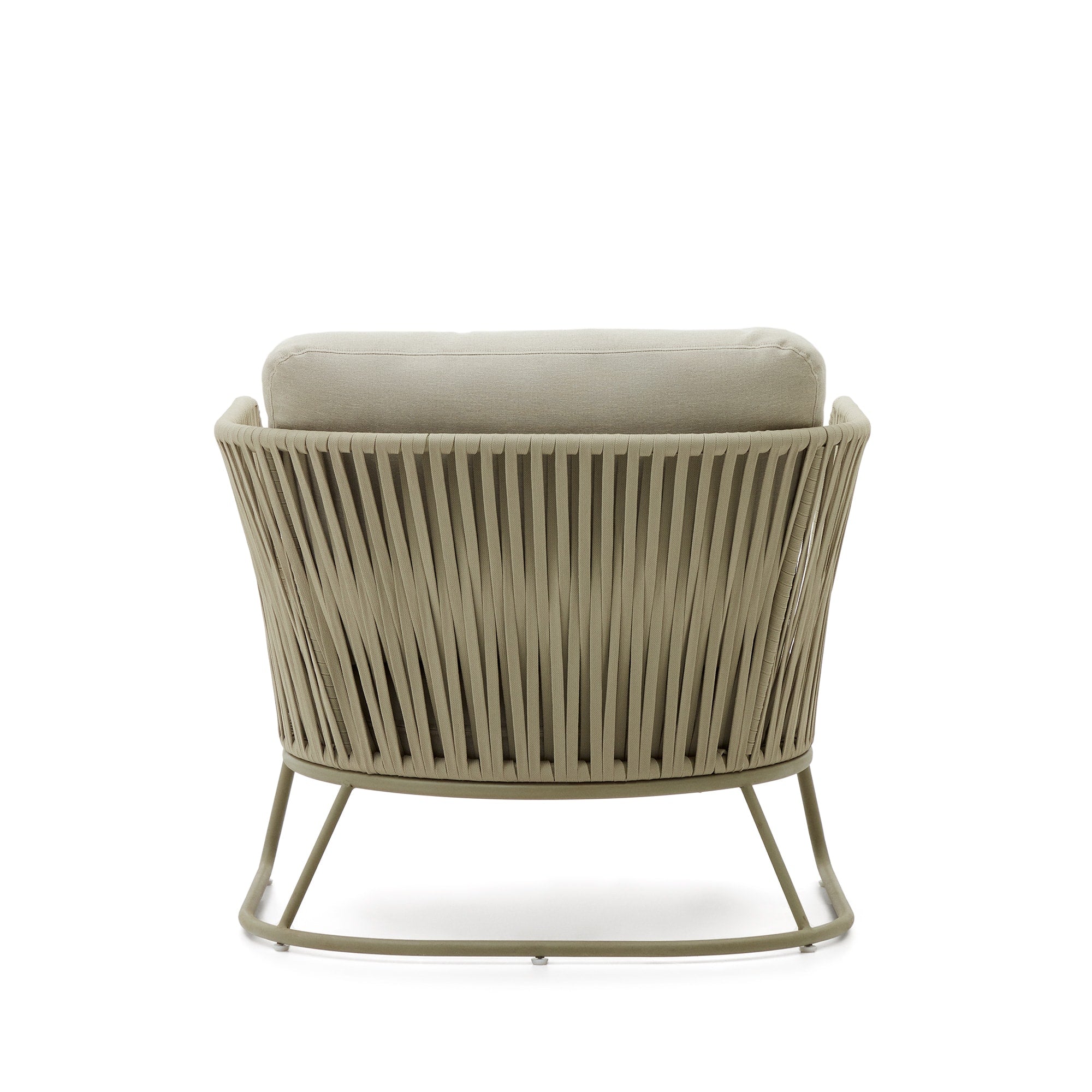 - Fauteuil met handgevlochten rugleuning en zitting met UV-bestendig touw.