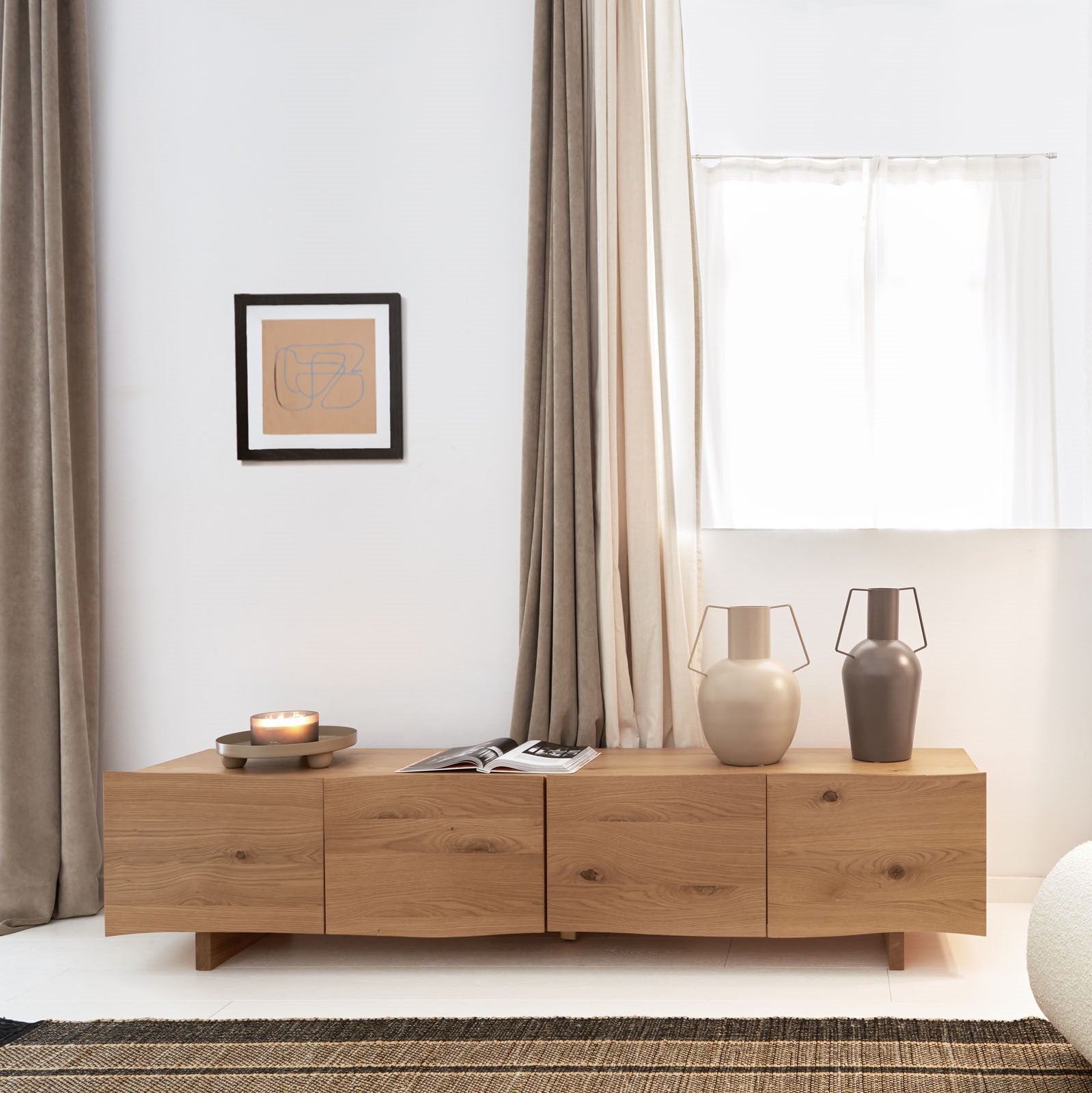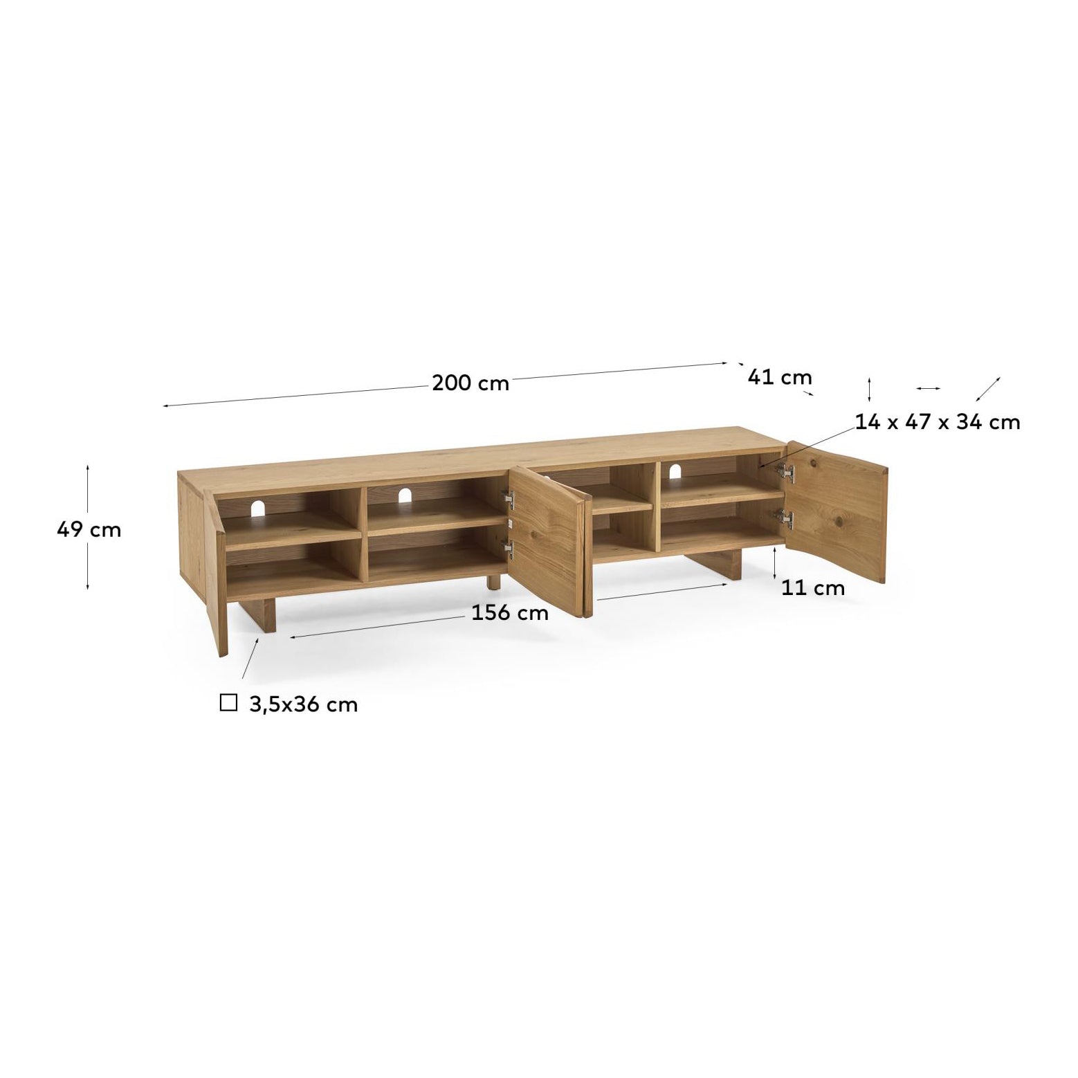 - Het 4-deurs tv-meubel heeft een afmeting van H 49 x B 200 x D 41 cm