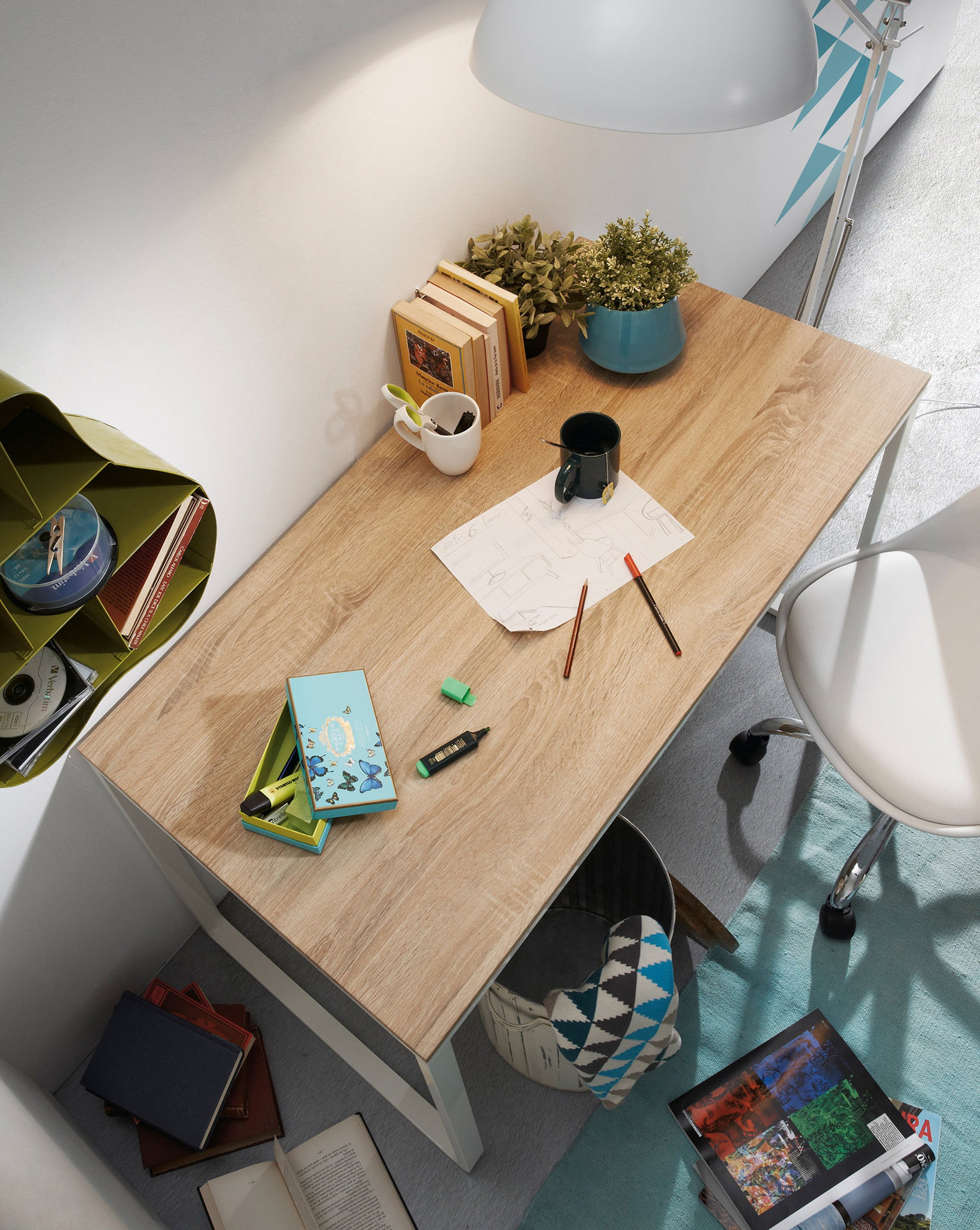 - Bureau met MDF blad met een afwerking van houtmotief effect.