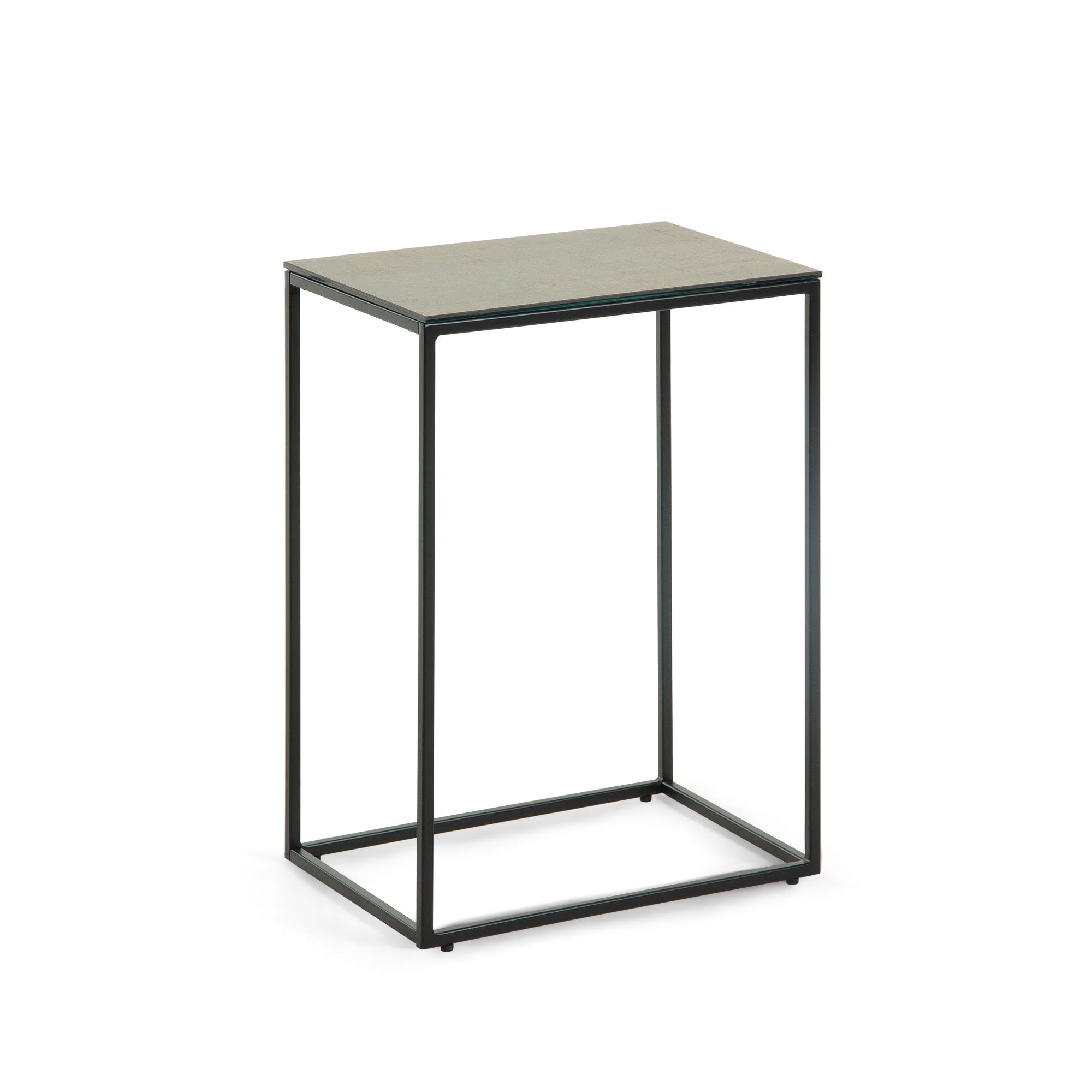 Rewena bijzettafel met bruin porseleinen blad en zwart stalen poten 45 x 30 cm