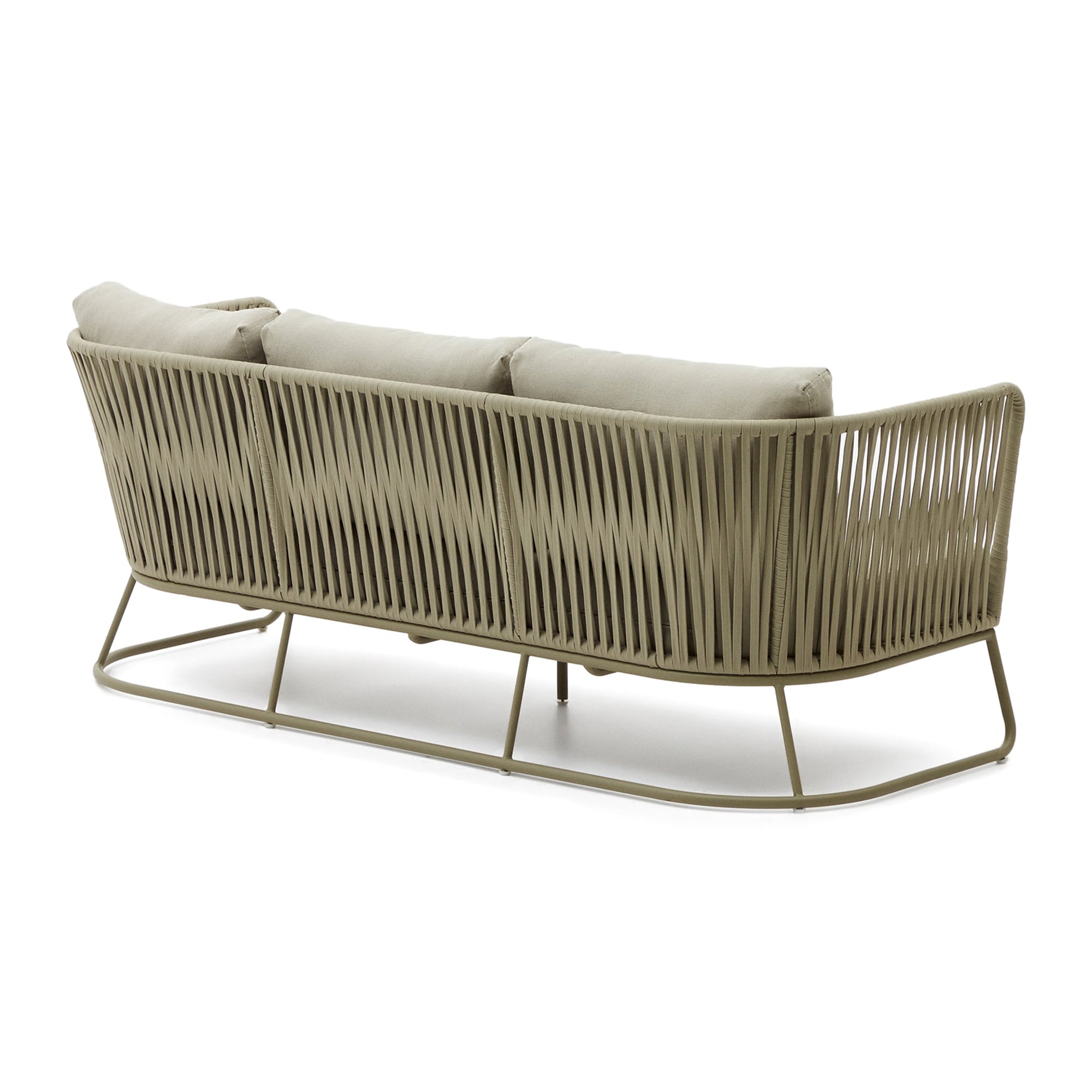 - Sofa met 3 zitplaatsen en handgevlochten rugleuning en zitting met UV-bestendig touw.