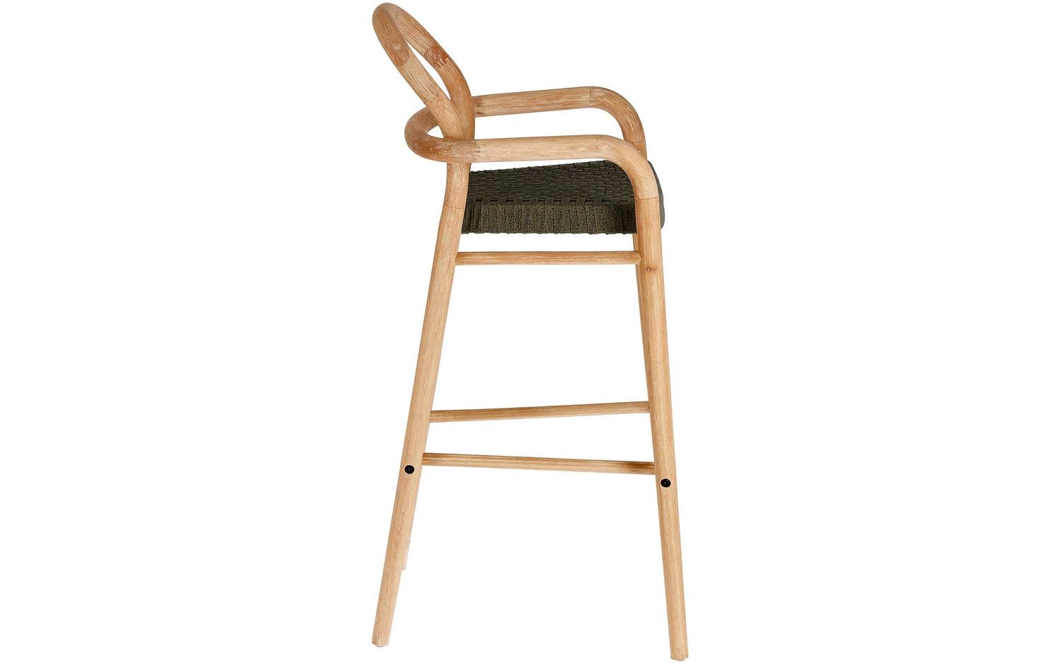 - Kruk met een structuur van massief eucalyptushout en een handgevlochten touwzitting. Geschikt voor binnen en buiten.