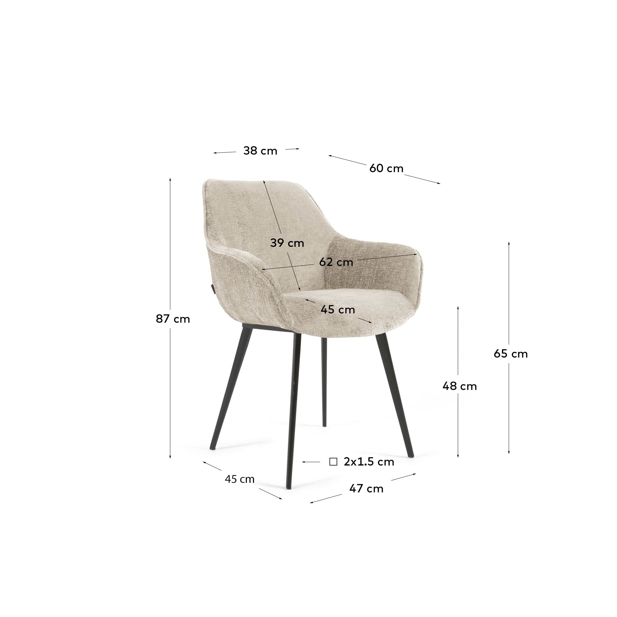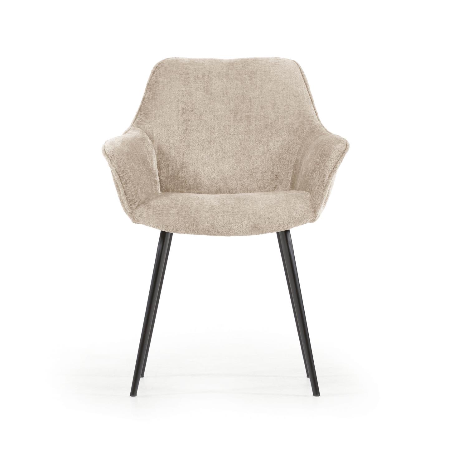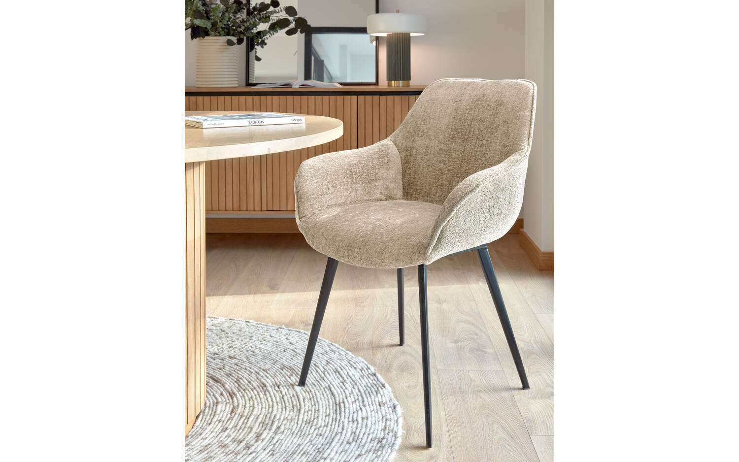 - Eetkamerstoel met armleuningen, bekleed met fluwelen chenille.