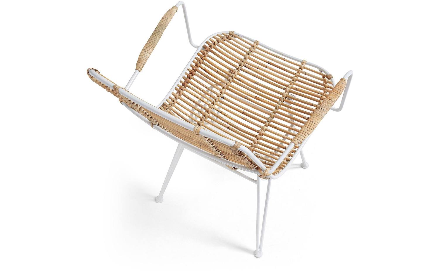 - Stoel met stalen frame bekleed met rotan voor extra comfort.