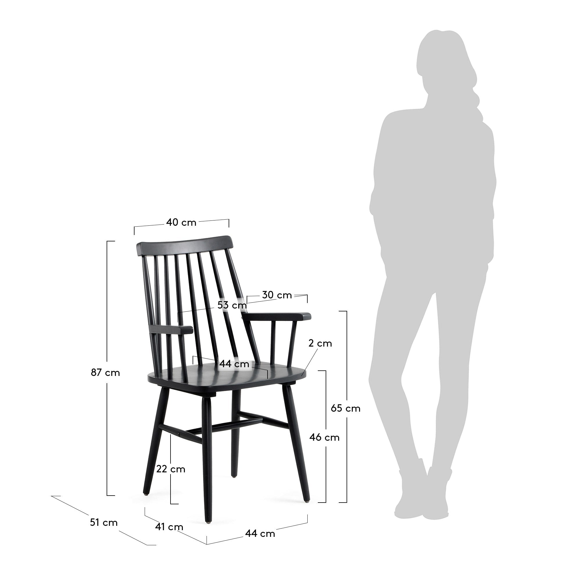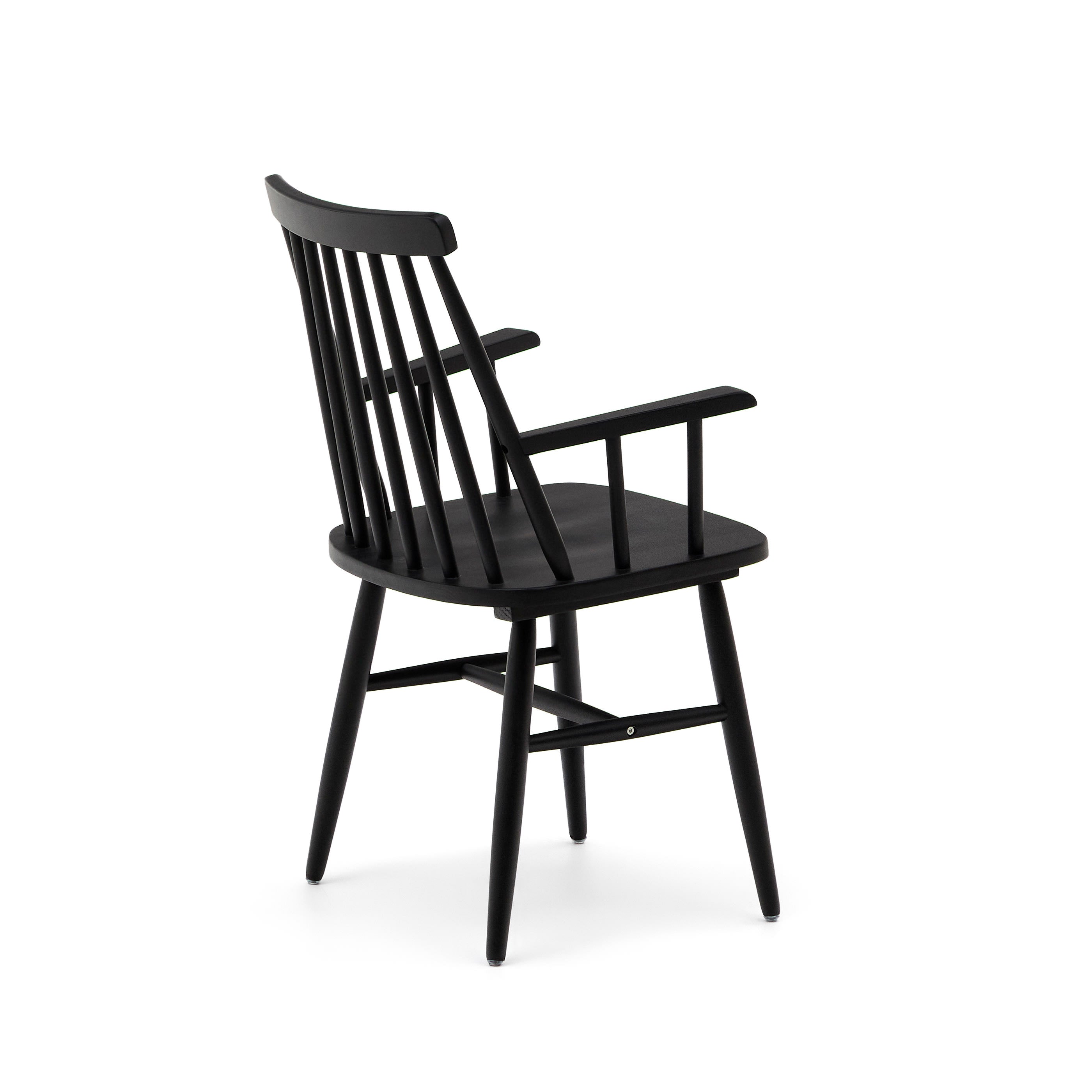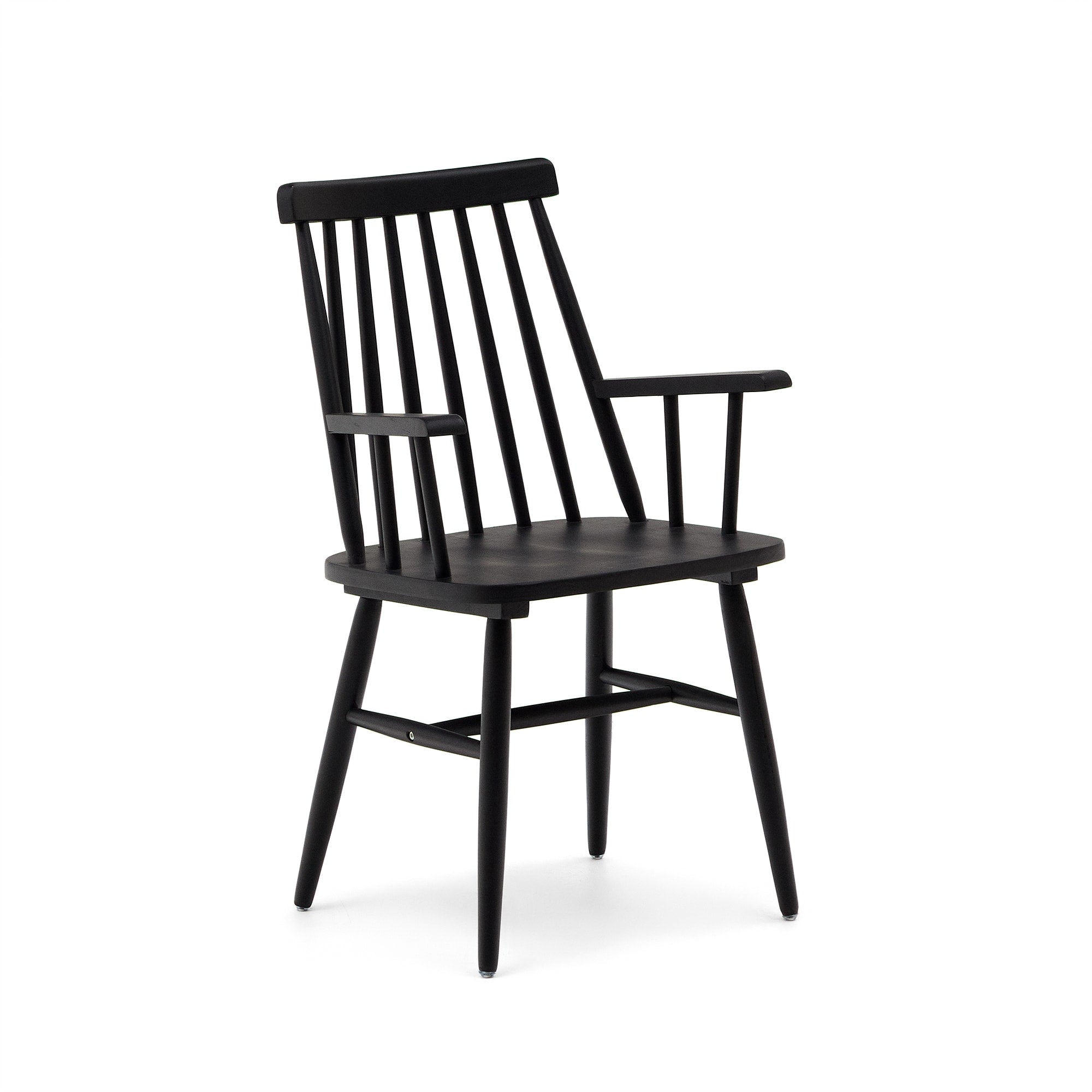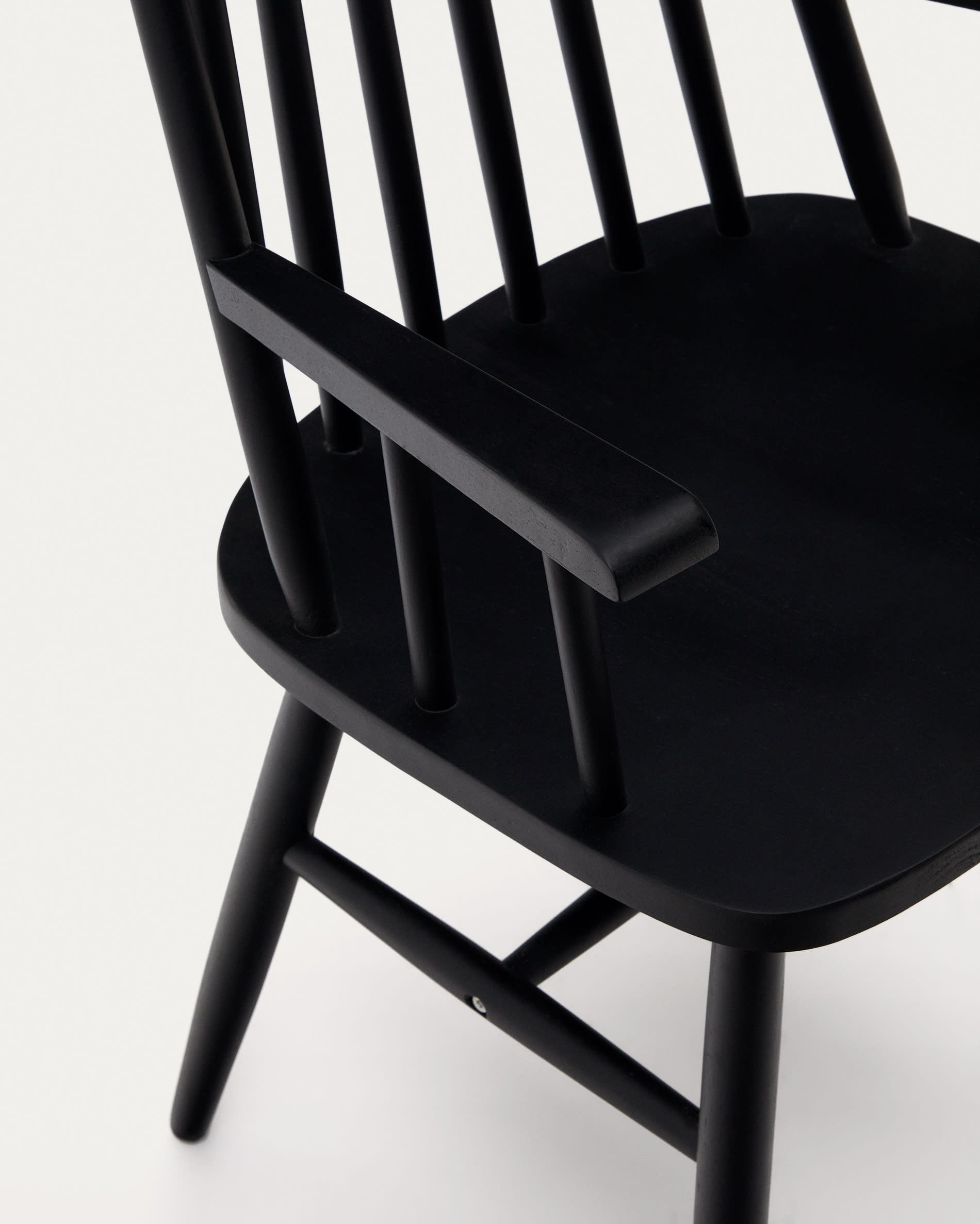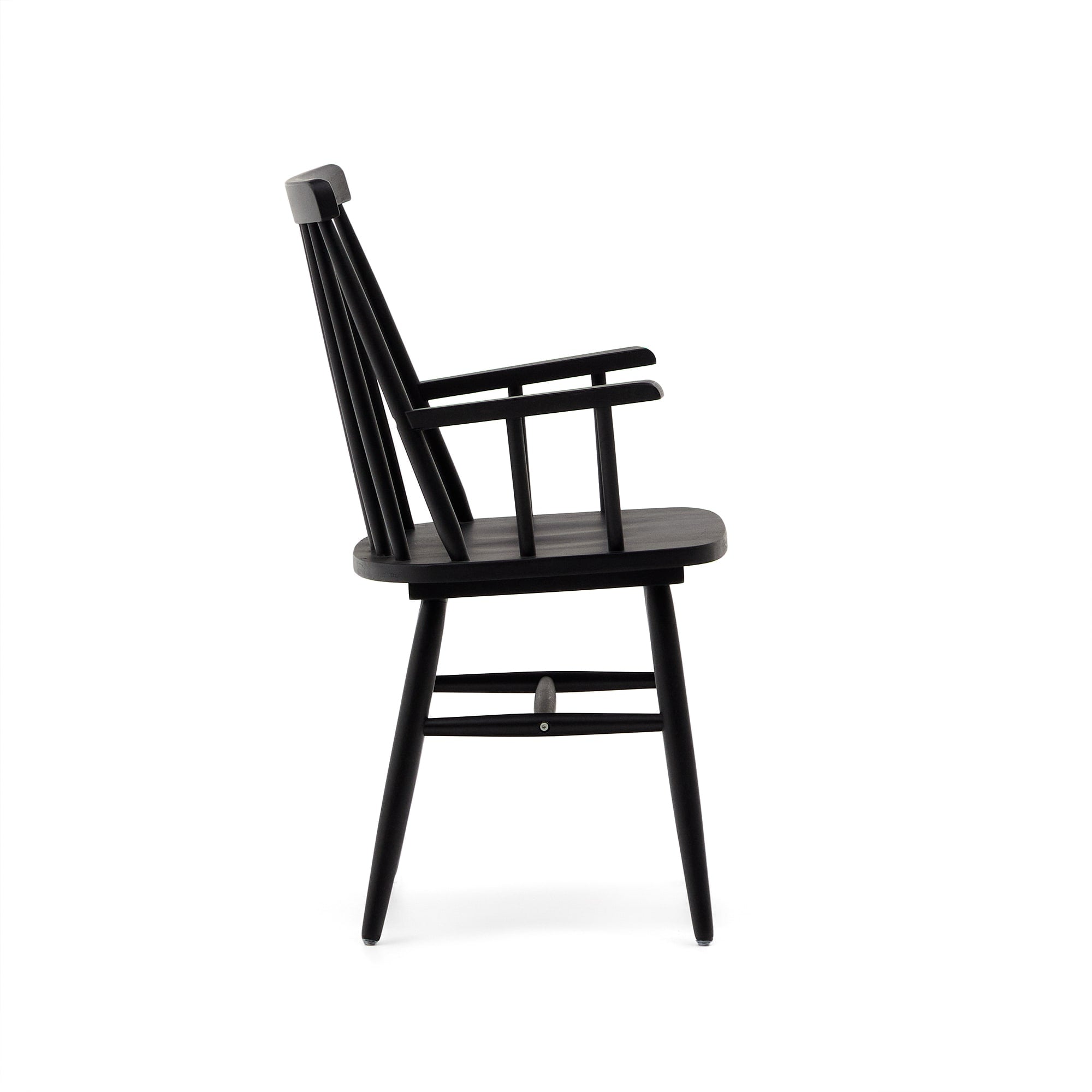 Stoel met armleuningen van massief rubberhout, zwart geverfd.