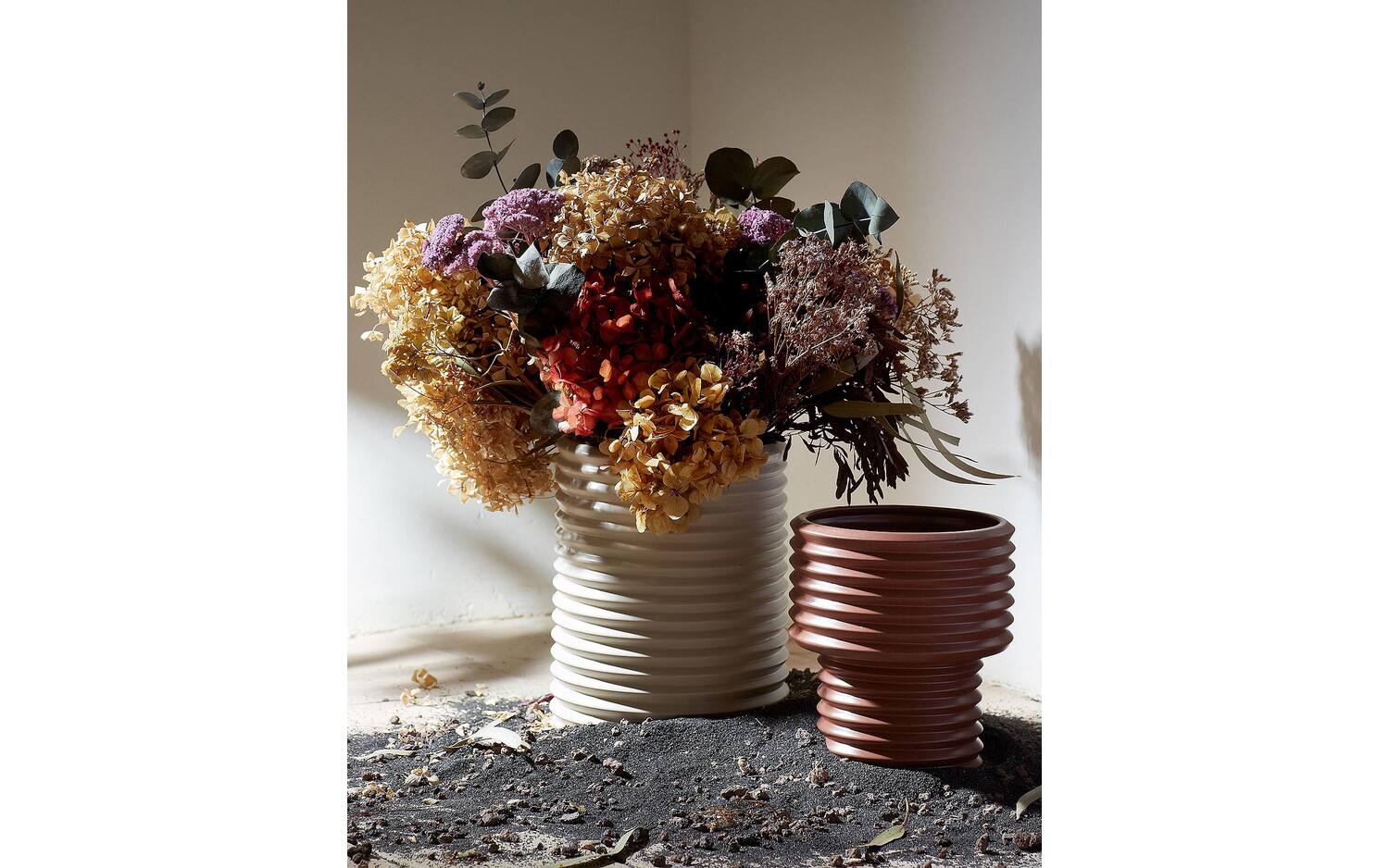 Design valt meteen op met vaas Aleray. Gemaakt van dolomiet, een natuurlijk materiaal, en op zo een manier ontworpen dat het een spel van verschillende volumes maakt. Het resultaat: een originele vaas in met de vorm van een schroef waar het voetstuk het smalste deel is. Bovendien is het wit geverfd, een kleur die prima bij elk soort bloem past, zelfs bij de meest exotische bloemen. Maak een topplek voor deze vaas en laat de natuur en het design in jouw woonkamer stralen.