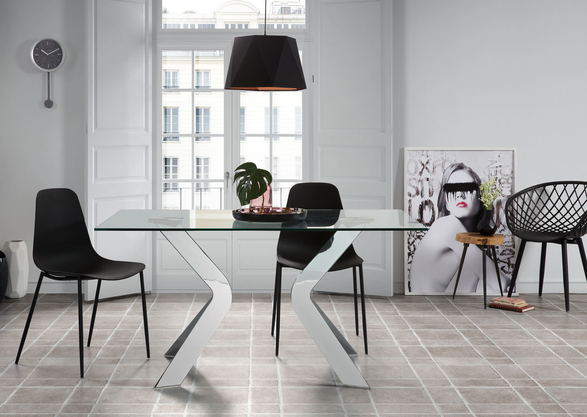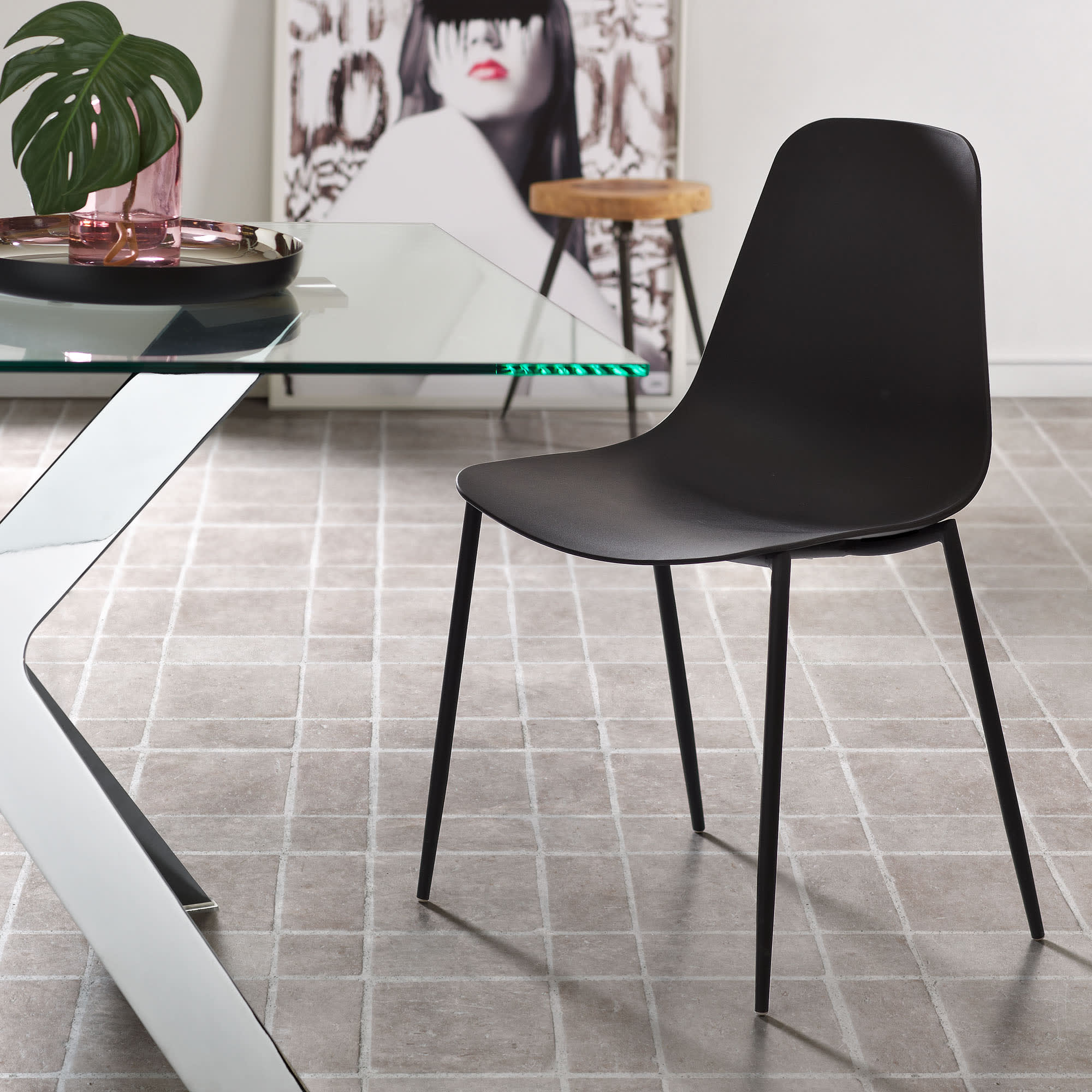 Whatts stoel met stalen poten in zwart