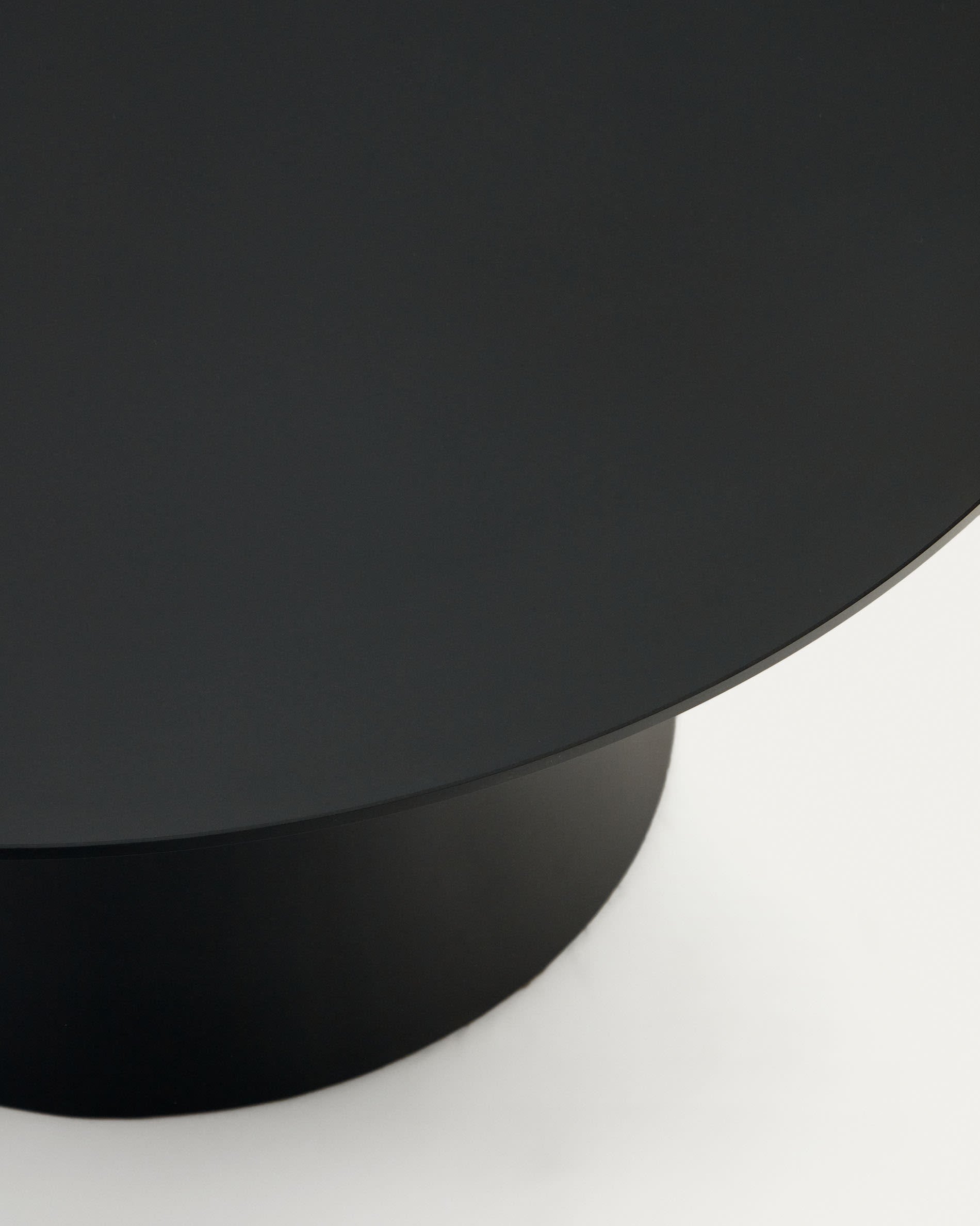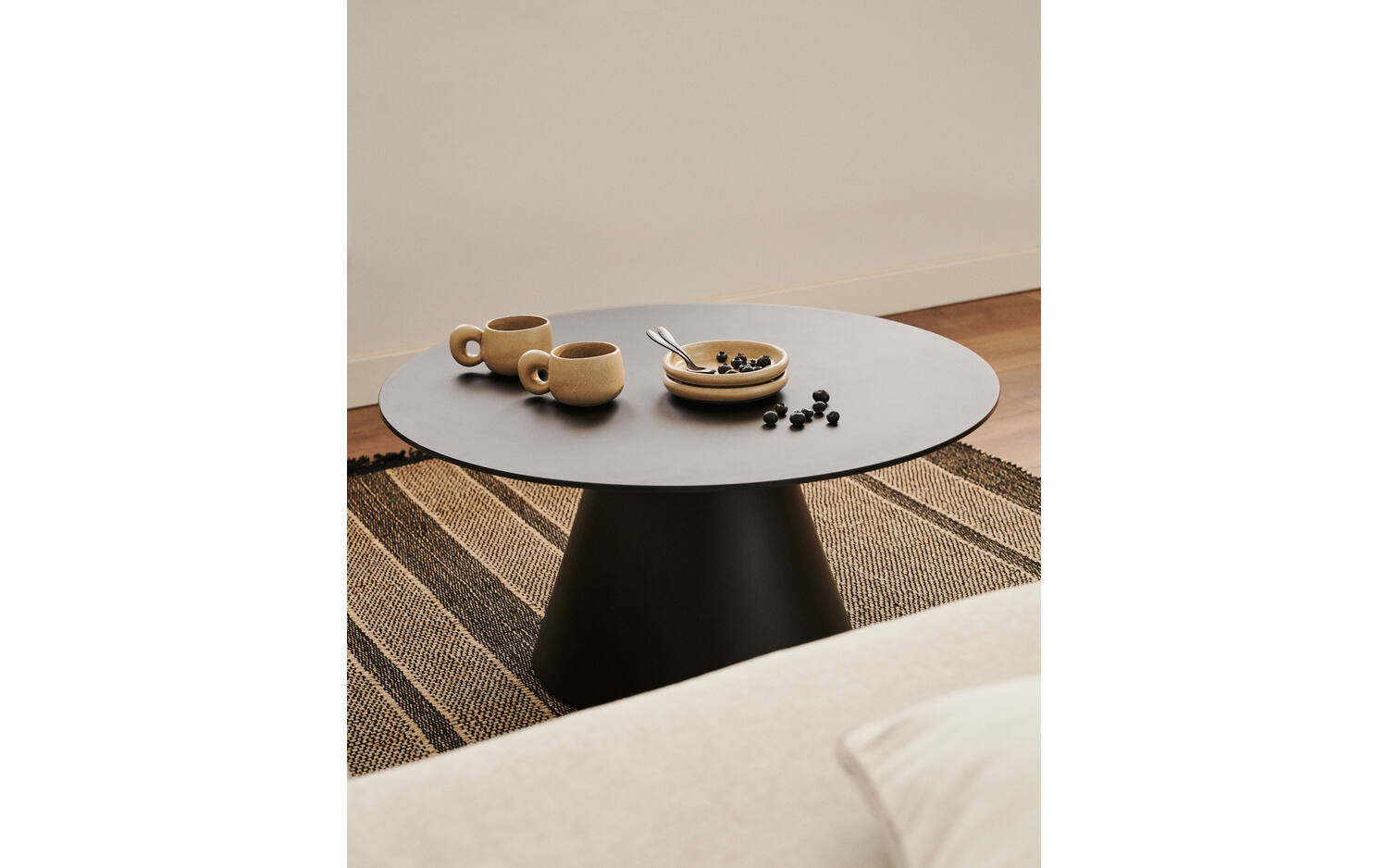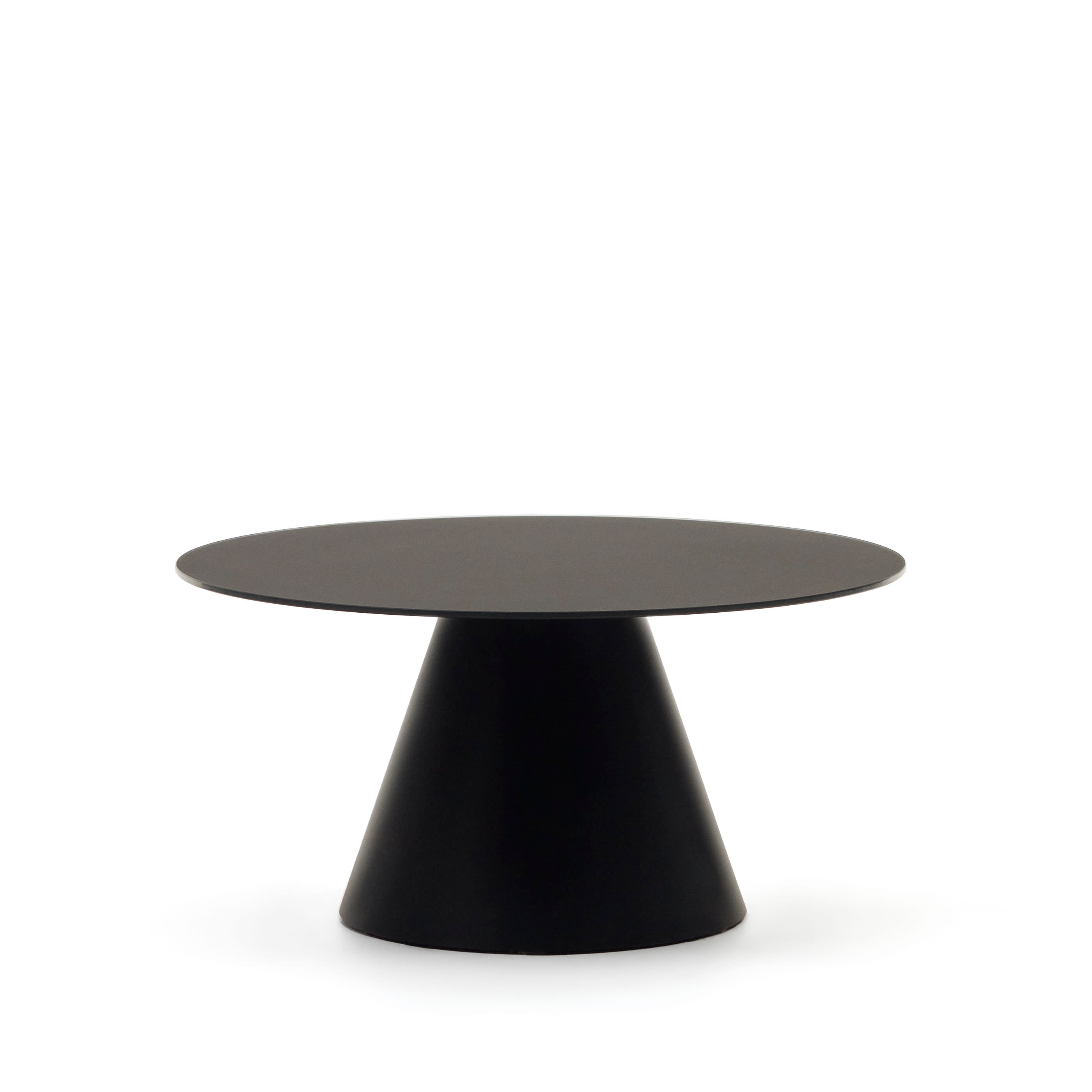 Wilshire salontafel van gehard glas en metaal, mat zwart, Ø 80 cm