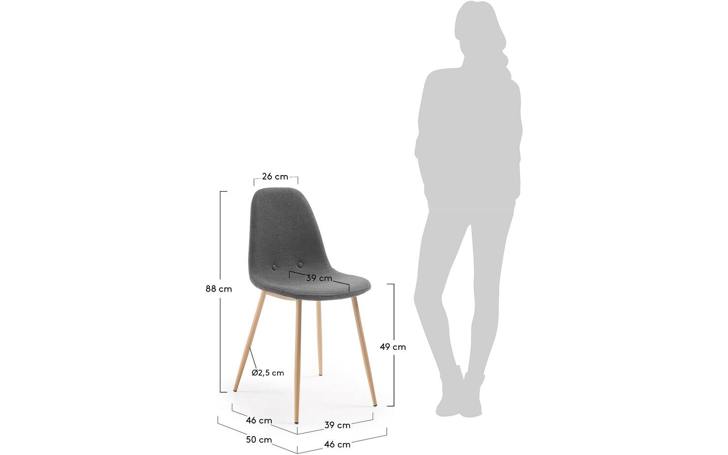 De hoogte van de zitting, gemeten vanaf de vloer. De ideale zithoogte bevindt zich tussen de 40 en 46 cm. Je zit het lekkerst met een ruimte van ongeveer 20 cm, tussen de stoelzitting en de onderkant van het tafelblad.