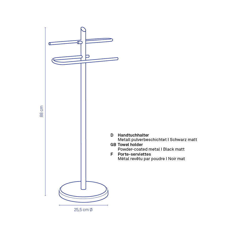 - Stijlvolle handdoekstandaard van H 88 x Ø 25,5 cm