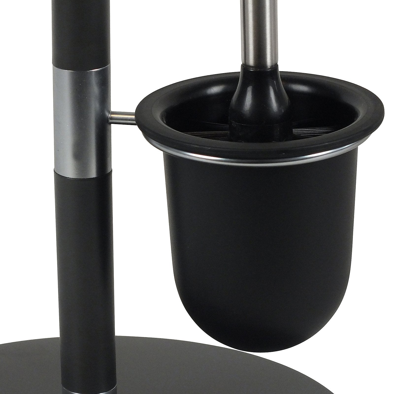 Met deze set heb je in één keer een toiletrol en een wc borstel bij de hand. Op deze manier neemt het minder ruimte in beslag en hoef je geen gaatjes in de muur te boren om houders op te hangen. Hij is voorzien van een ronde zwarte voet en heeft metaal kleurige details. De set is voorzien van het gemoderniseerde La Brosse toiletborstel systeem waardoor de borstel uniek in zijn houder staat. De set is voorzien van de originele borstelkop met robuuste haren waar vervangende borstels voor verkrijgbaar zijn.