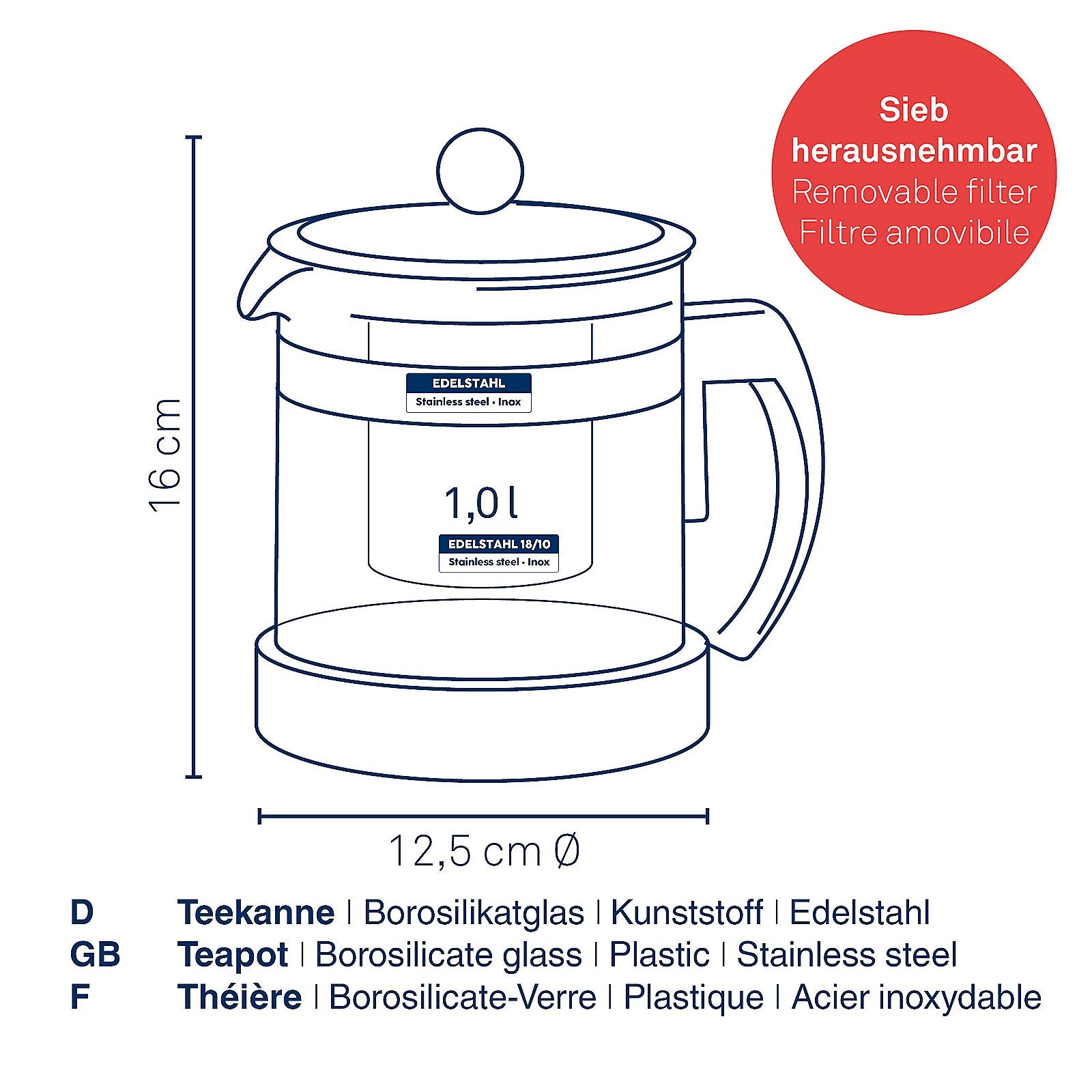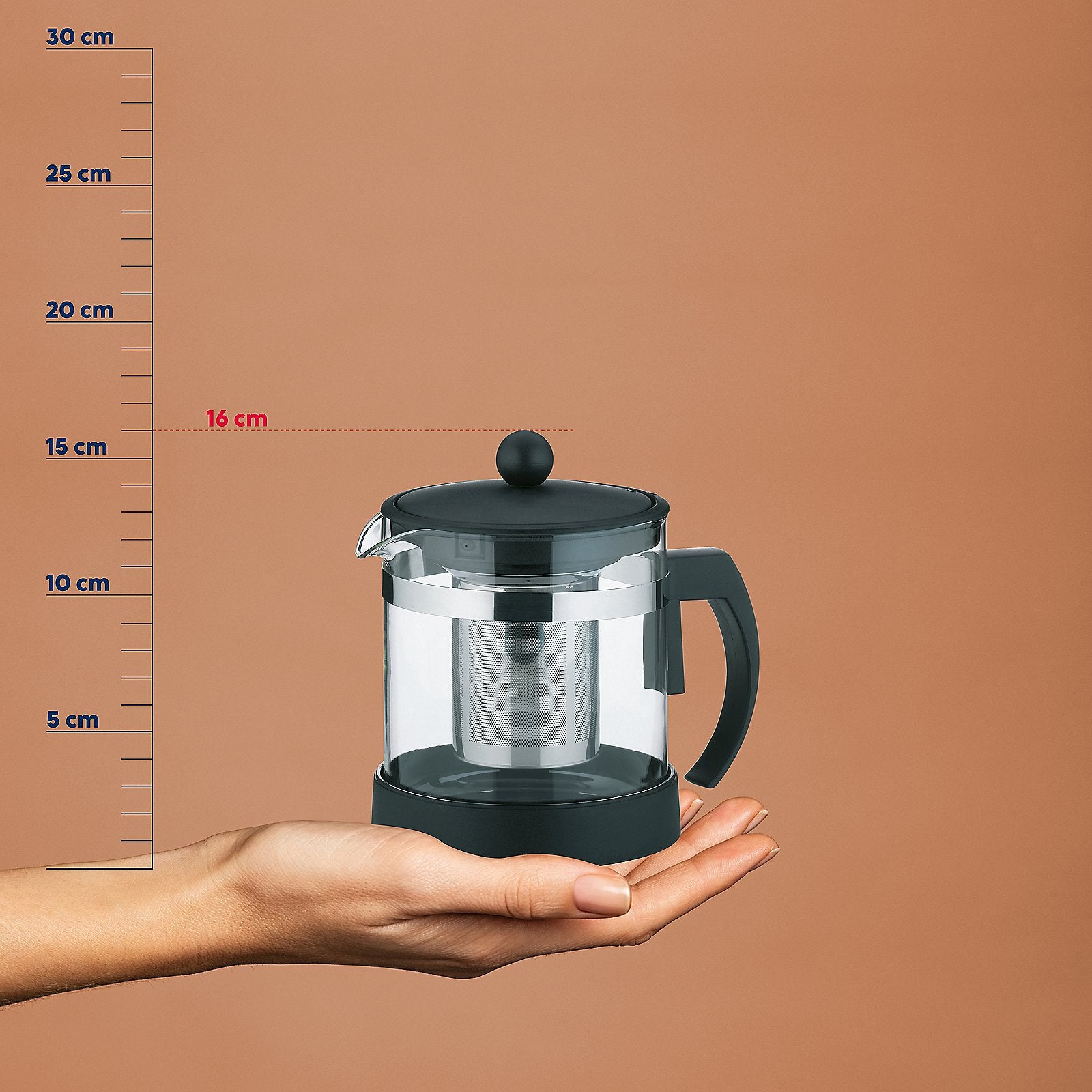 Een goede kop verse thee is natuurlijk heerlijk om mee te ontspannen, maar dan wil je ook wel een theepot welke ideaal schenkt en de thee ook nog eens mooi op smaak houdt. De theepotten uit de Auron serie zijn fantastisch door het transparante design en mooie strakke vorm inclusief zwarte afwerking. Zo kunt u gemakkelijk zien wanneer het hoog tijd is om nieuw water op te zetten. Door middel van de uitneembare zeef kunt u zonder moeite de verse thee in en uitnemen en ziet u al wachtend tijdens het zetten een heerlijke pot thee ontstaan. De losse onderzetter zorgt er voor dat de pot makkelijk en stabiel neer te zetten is.