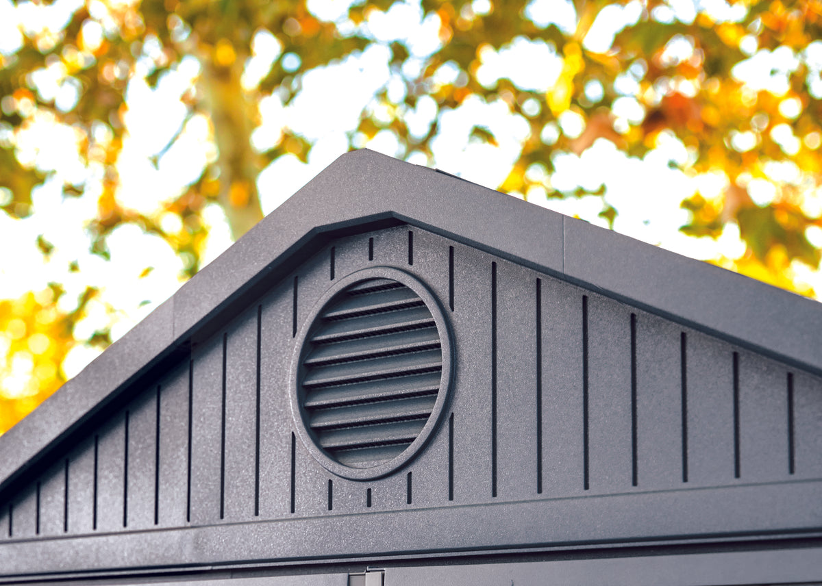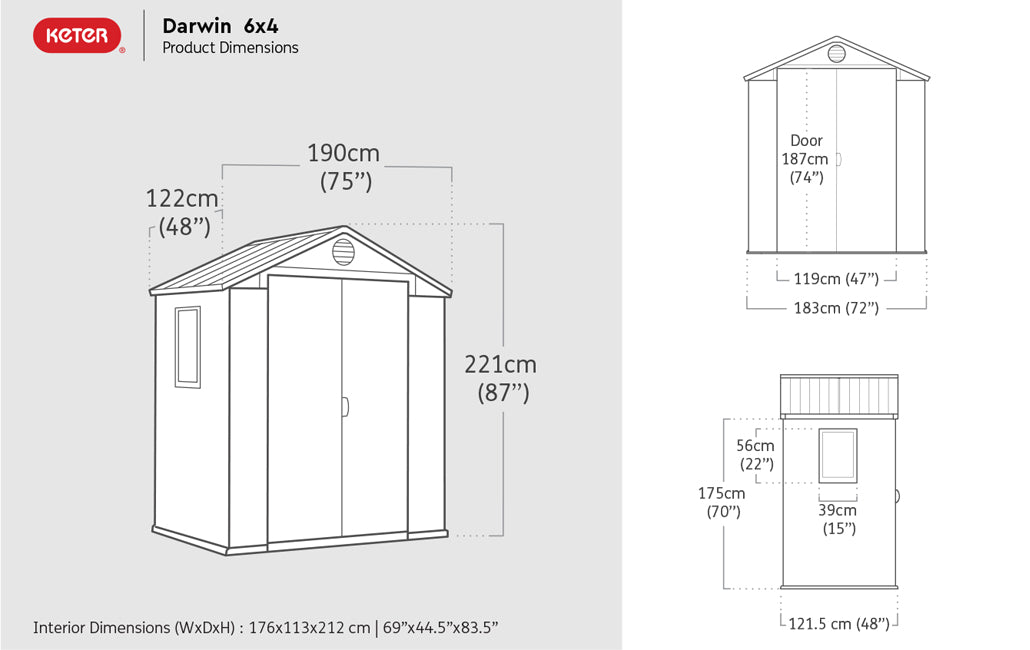 Het Keter Darwin 64 Tuinhuis is de ultieme tuinberging. Met dubbele deuren en een ongelooflijk ruim interieur, weet je dat het past. Berg tuingereedschap, tuinmeubilair en nog veel meer veilig op. De met metaal versterkte dubbelwandige tong-en-groef constructie van de Darwin 64 is ongelooflijk sterk en stijf, en het bevat hardware als je hem wilt vergrendelen. Praktische details zoals een ventilatieopening voor luchtcirculatie en een raam en dakraam voor een goed verlicht interieur zijn inbegrepen, en Evotech-wandpanelen geven het de schoonheid en het gevoel van hout zonder enig onderhoud.